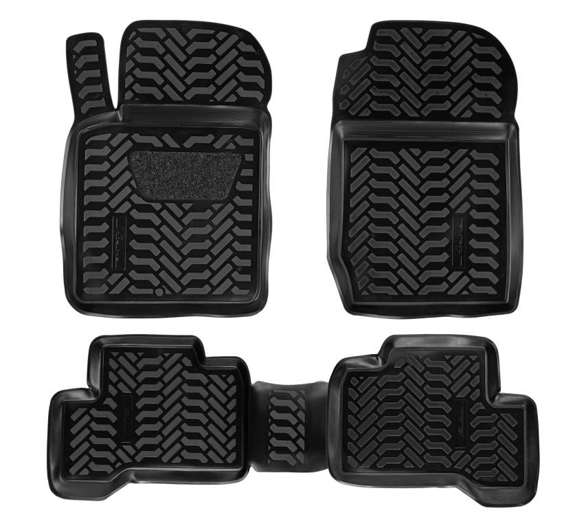 Ковры изготовлены из современного полимера ТЭП, который не теряет эластичность и сохраняет форму при пониженных и повышенных температурах. Ковры идеально повторяют форму пола выбранного автомобиля за счет снятия его индивидуальных размеров 3D сканером. Ковры имеют современный рисунок имитирующий протектор шин. У большинства моделей водительский коврик имеет ворсовый подпятник для предотвращения соскальзывания ноги, а так же оснащены крепежом для крепления их в штатных местах. Ковры преображают вид салона автомобиля и защищают напольный ковролин от истирания, намокания и загрязнений на долгое время. Преимущества ковров: эластичный материал стойкие к повышенным и пониженным температурам (- 40/+ 65 ?С) идеально повторяют форму пола авто(3D сканирование) не имеют неприятного запахавысокие бортикимодный дизайн