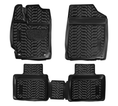 Ковры изготовлены из современного полимера ТЭП, который не теряет эластичность и сохраняет форму при пониженных и повышенных температурах. Ковры идеально повторяют форму пола выбранного автомобиля за счет снятия его индивидуальных размеров 3D сканером. Ковры имеют современный рисунок имитирующий протектор шин. У большинства моделей водительский коврик имеет ворсовый подпятник для предотвращения соскальзывания ноги, а так же оснащены крепежом для крепления их в штатных местах. Ковры преображают вид салона автомобиля и защищают напольный ковролин от истирания, намокания и загрязнений на долгое время. Преимущества ковров: эластичный материал стойкие к повышенным и пониженным температурам (- 40/+ 65 ?С) идеально повторяют форму пола авто(3D сканирование) не имеют неприятного запахавысокие бортикимодный дизайн