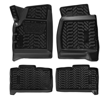 Ковры изготовлены из современного полимера ТЭП, который не теряет эластичность и сохраняет форму при пониженных и повышенных температурах. Ковры идеально повторяют форму пола выбранного автомобиля за счет снятия его индивидуальных размеров 3D сканером. Ковры имеют современный рисунок имитирующий протектор шин. У большинства моделей водительский коврик имеет ворсовый подпятник для предотвращения соскальзывания ноги, а так же оснащены крепежом для крепления их в штатных местах. Ковры преображают вид салона автомобиля и защищают напольный ковролин от истирания, намокания и загрязнений на долгое время. Преимущества ковров: эластичный материал стойкие к повышенным и пониженным температурам (- 40/+ 65 ?С) идеально повторяют форму пола авто(3D сканирование) не имеют неприятного запахавысокие бортикимодный дизайн