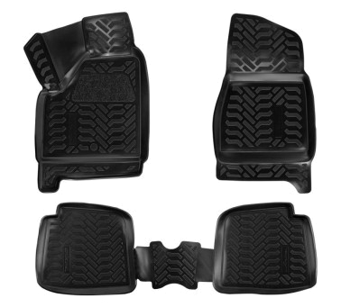 Ковры изготовлены из современного полимера ТЭП, который не теряет эластичность и сохраняет форму при пониженных и повышенных температурах. Ковры идеально повторяют форму пола выбранного автомобиля за счет снятия его индивидуальных размеров 3D сканером. Ковры имеют современный рисунок имитирующий протектор шин. У большинства моделей водительский коврик имеет ворсовый подпятник для предотвращения соскальзывания ноги, а так же оснащены крепежом для крепления их в штатных местах. Ковры преображают вид салона автомобиля и защищают напольный ковролин от истирания, намокания и загрязнений на долгое время. Преимущества ковров: эластичный материал стойкие к повышенным и пониженным температурам (- 40/+ 65 ?С) идеально повторяют форму пола авто(3D сканирование) не имеют неприятного запахавысокие бортикимодный дизайн