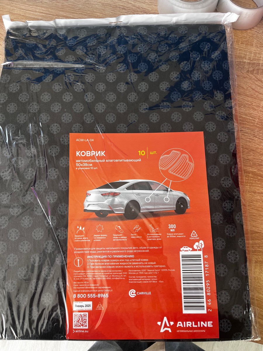 Комплект состоит из 10 влаговпитывающих ковриков на передний ряд автомобиля. Коврики имеют рисунок "клетки" или "снежинки". Обладают хорошими впитывающими свойствами, тем самым сохранят чистоту в салоне автомобиля, предохранят одежду и обувь автомобилиста от сильных загрязнений в дождливую и снежную погоду. Коврики предназначены для одноразового использования. Данного комплекта хватит на более длительное время и избавит от необходимости частых походов в магазин.