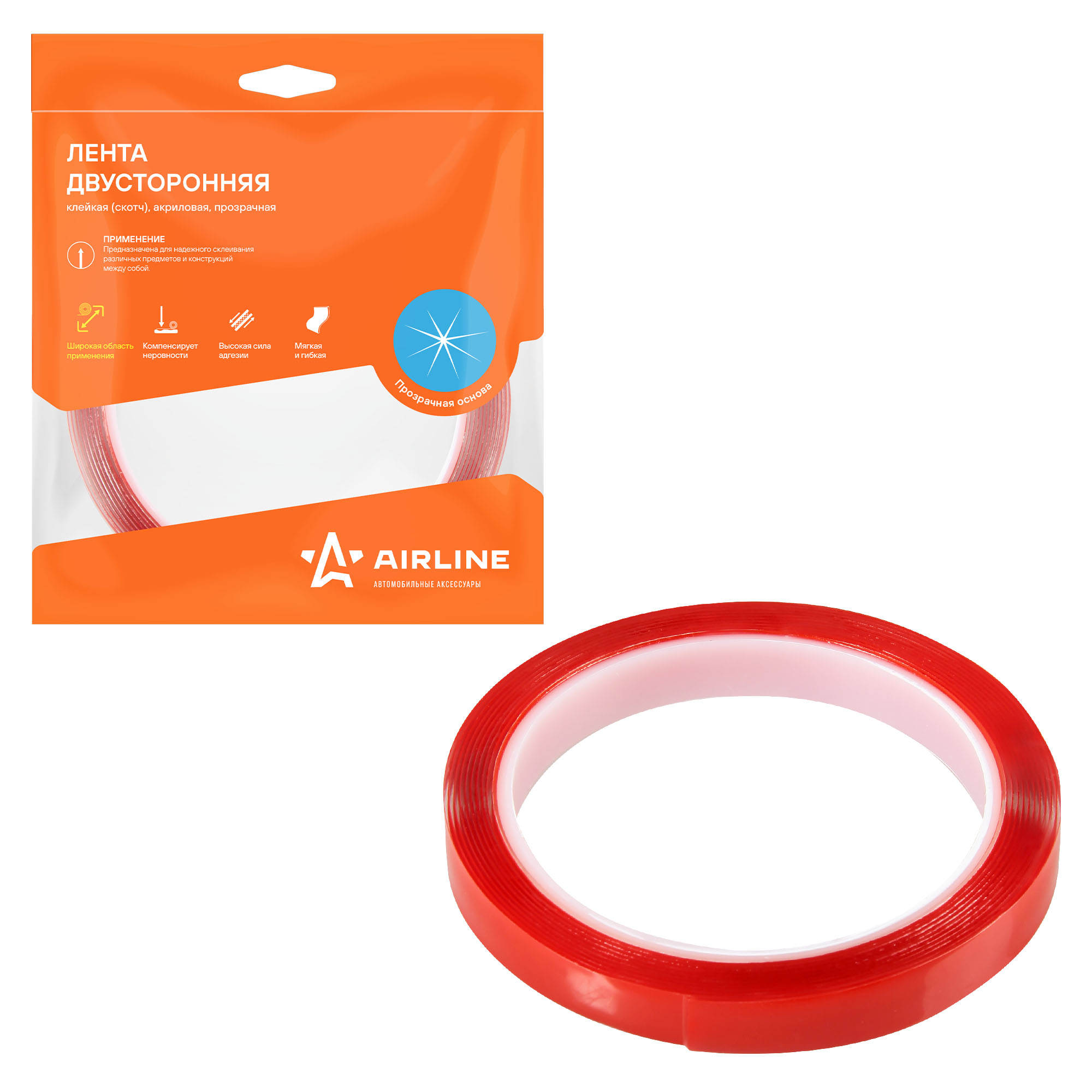 Ленты предназначены для соединения между собой предметов из различных материалов, не портя их сверлением отверстий или нанесением клея. Мягкая и гибкая прозрачная основа обеспечивает надежное сцепление даже с неровными и структурированными поверхностям и делает ее практически незаметной. Лента обладает повышенной силой адгезии (сцепления), в качестве клеевой поверхности в них используется акриловый клей. Двусторонняя лента AIRLINE незаменима при ремонтных работах в автомобиле, гараже, дома, или на даче.