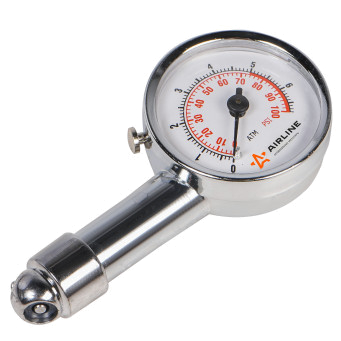 Устройство для измерения давления в шинах автомобиля. Манометр имеет прочный металлический корпус с защитным хромовым покрытием.