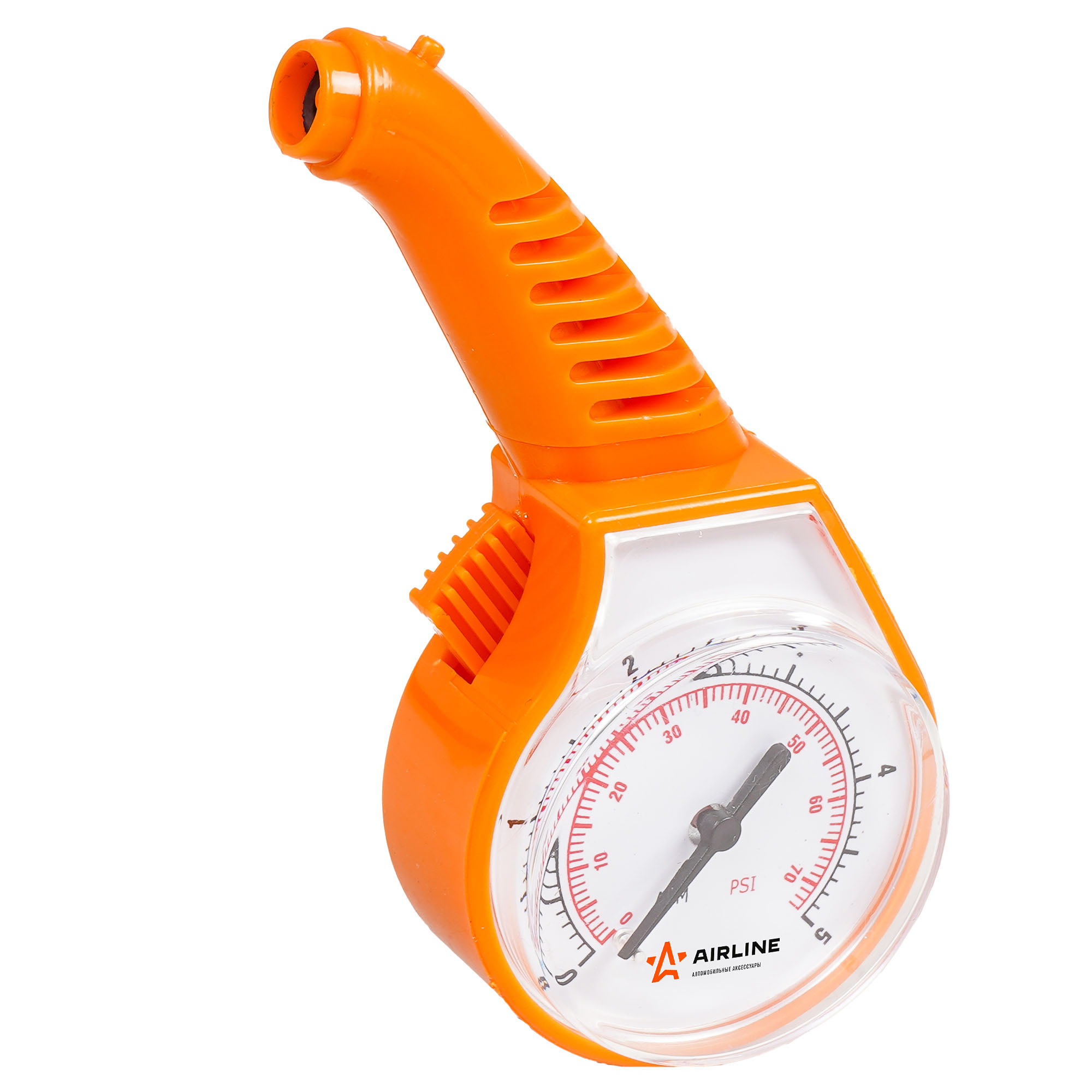 Устройство для измерения давления в шинах автомобиля. Манометр имеет лёгкий корпус с ярким окрасом.