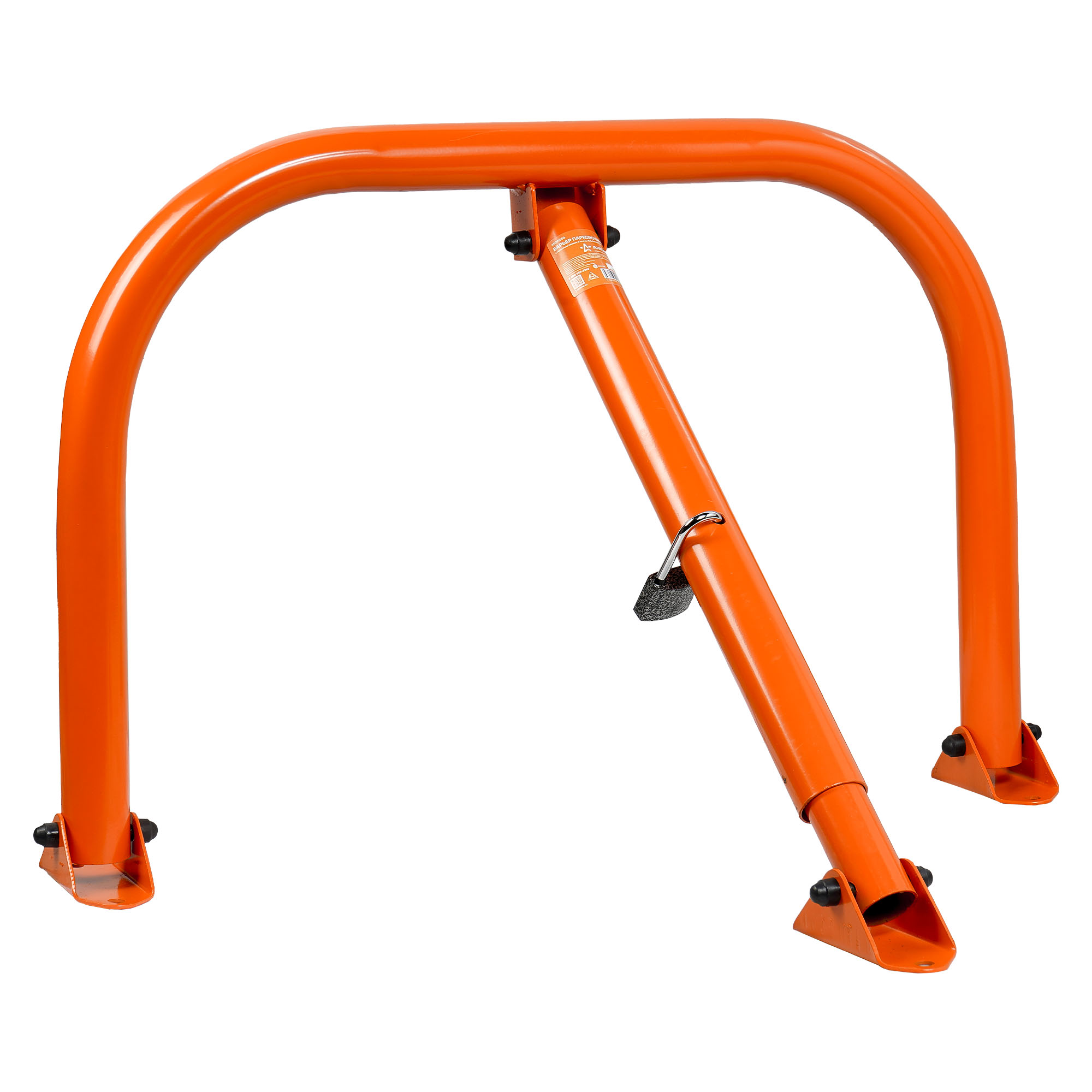 Барьер парковочный предназначен для резервирования парковочного места автомобиля на частных территориях и парковках. Барьер фиксируется на парковочном месте с помощью анкерных болтов (болты не входят в комплект поставки). В сложенном виде, изделие возвышается над дорожным покрытием всего на 5 см. Профиль опорного основания защищает от повреждения шины и колесные диски при возможном наезде. В рабочем положении, блокиратор фиксируется навесным замком. Блокиратор изготовлен из оцинкованной стали, покрытой оранжевой порошковой краской.