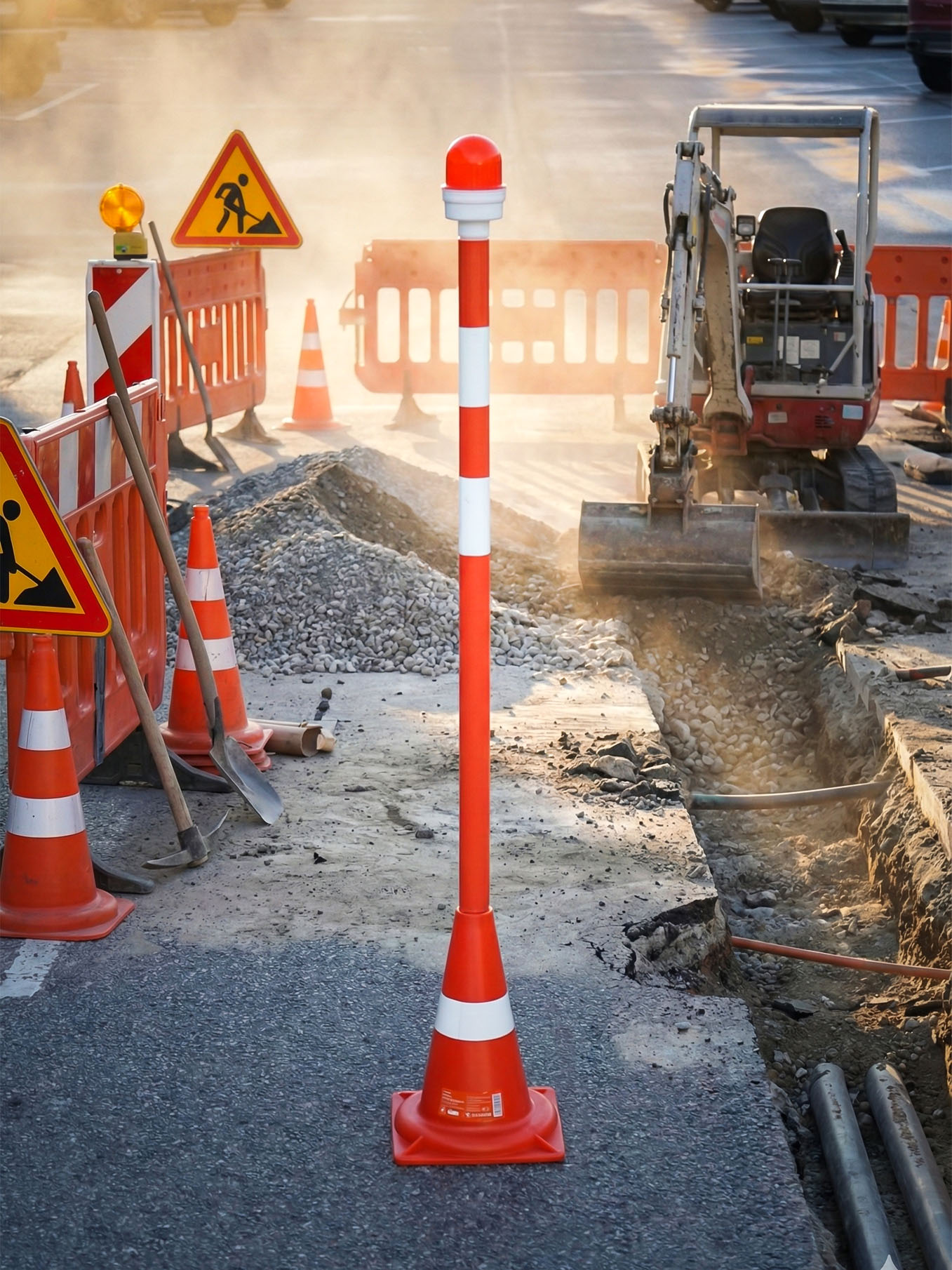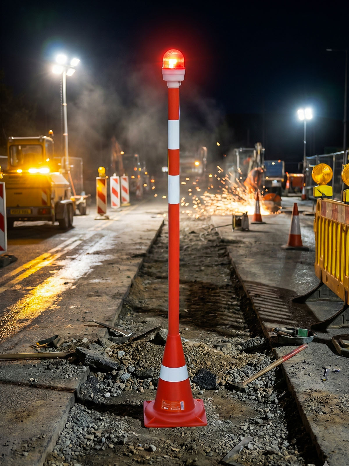 Фонарь (фонарик) сигнальный ФС-4.1: диаметр 85 мм, высота 215 мм, Предназначены для обозначения мест с запрещенным проходом и привлечения внимания водителей на объекты, представляющие большую опасность при движении в темное время суток, для обозначения зон проведения работ на дорогах при ремонте на дорогах в тёмное время суток, строительстве, обозначают разделительные полосы, бордюры. Устанавливаются на оградительные вехи, барьеры, дорожные конусы, аварийные ограждения. Работают в условиях низкой видимости путем подачи импульсных световых сигналов. Водитель видит сигнал издалека и успевает вовремя притормозить, пойти в объезд опасного места.
