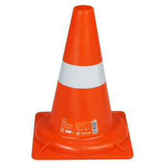 После наезда, конусы принимают свою исходную форму. Полосы из световозвращающей пленки высокой интенсивности ( делают конус более заметным как в светлое, так и в тёмное время суток.