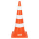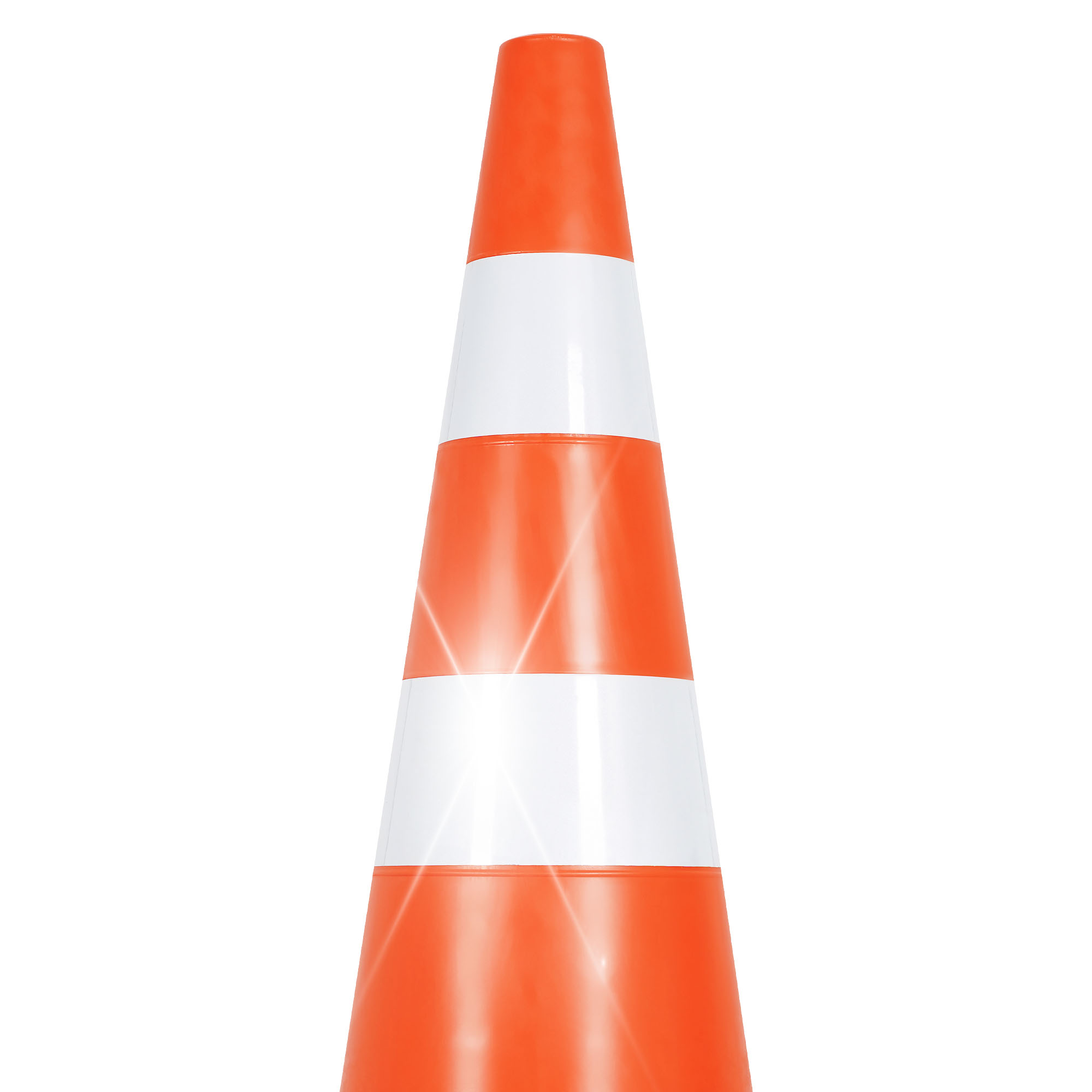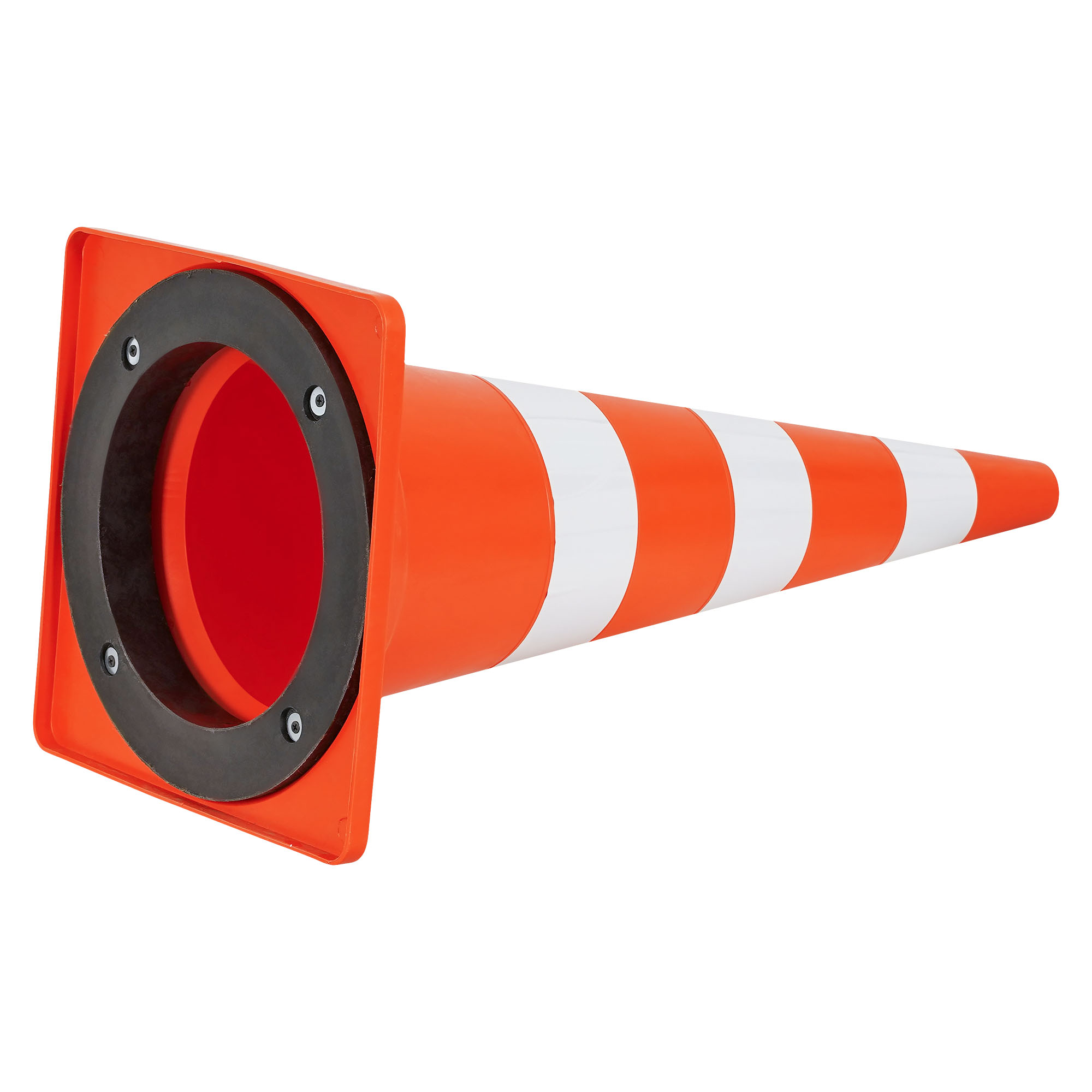 Конусы предназначены для регулировки движения транспорта и пешеходов, помогают водителям увидеть препятствия издалека и безопасно запланировать маневр, избежав аварии.