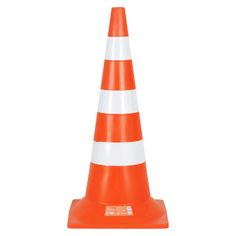 Изготовлены из специального морозостойкого пластика и редко ломаются при наезде автомобиля. С одной стороны это помогает защитить транспорт от потенциальных царапин на кузове, а с другой, позволяет дольше использовать конусы. Модель оснащена встроенным утяжелителем для большей устойчивости. Из-за увеличенного веса их тяжелее сдвинуть с места установки.