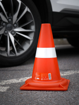 Конусы предназначены для регулировки движения транспорта и пешеходов, помогают водителям увидеть препятствия издалека и безопасно запланировать маневр, избежав аварии.