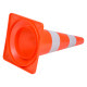 Изготовлены из мягкого пластика, не ломаются при наезде автомобиля. С одной стороны это помогает защитить транспорт от потенциальных царапин на кузове, а с другой, позволяет дольше использовать конусы. После наезда, конусы принимают свою исходную форму. Полосы из световозвращающей пленки высокой интенсивности делают конус более заметным как в светлое, так и в тёмное время суток.