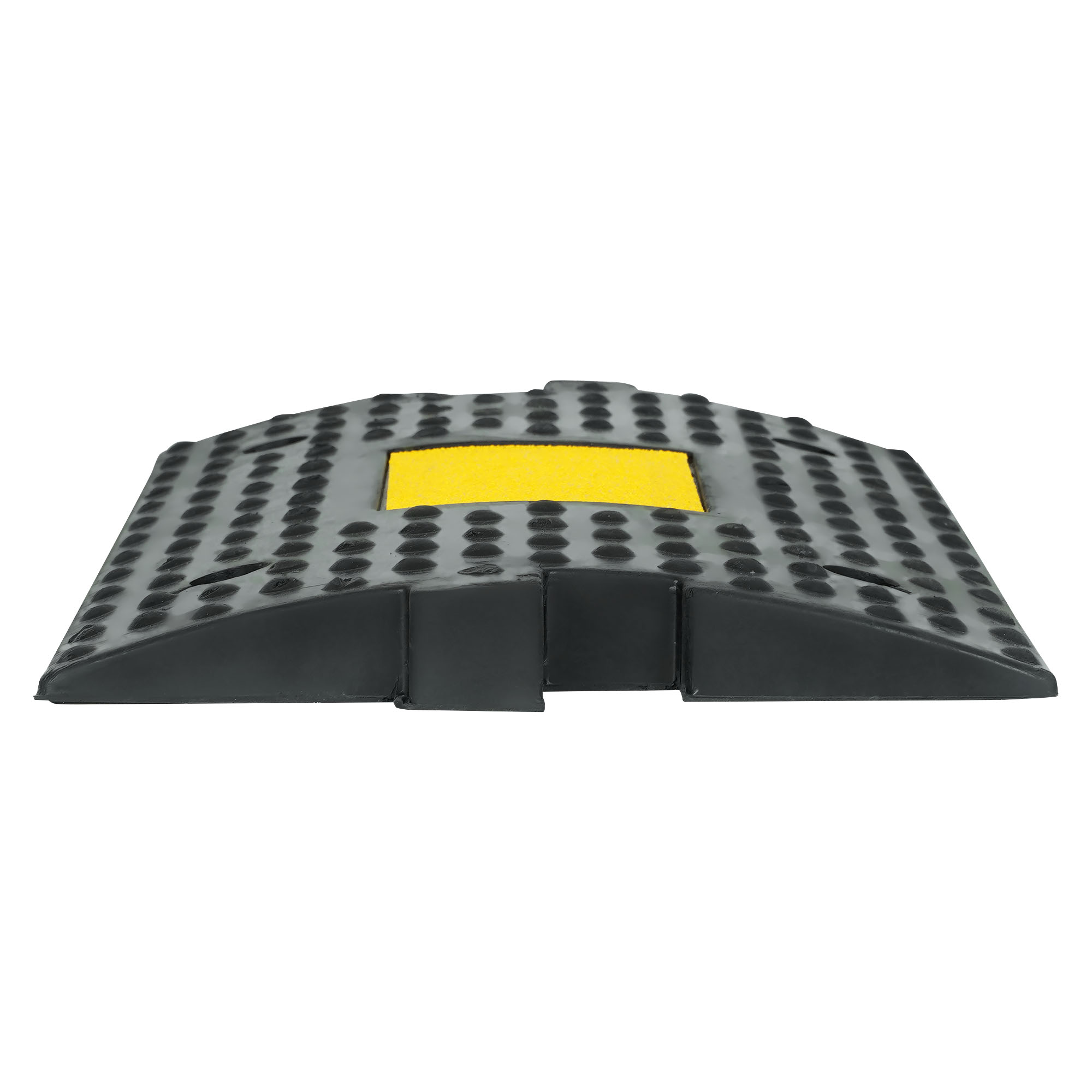 Искусственная дорожная неровность(ИДН) изготовлена из ударопрочной резины высокого качества. На наружной поверхности элементов имеются выступы сферической формы для отличного сцепления с автомобильными шинами. Нижняя часть изделия имеет протектор, который обеспечивает надлежащий водоотвод. «Лежачие полицейские» повышают уровень безопасности за счет принудительного снижения скорости автотранспорта до 30 км/ч.