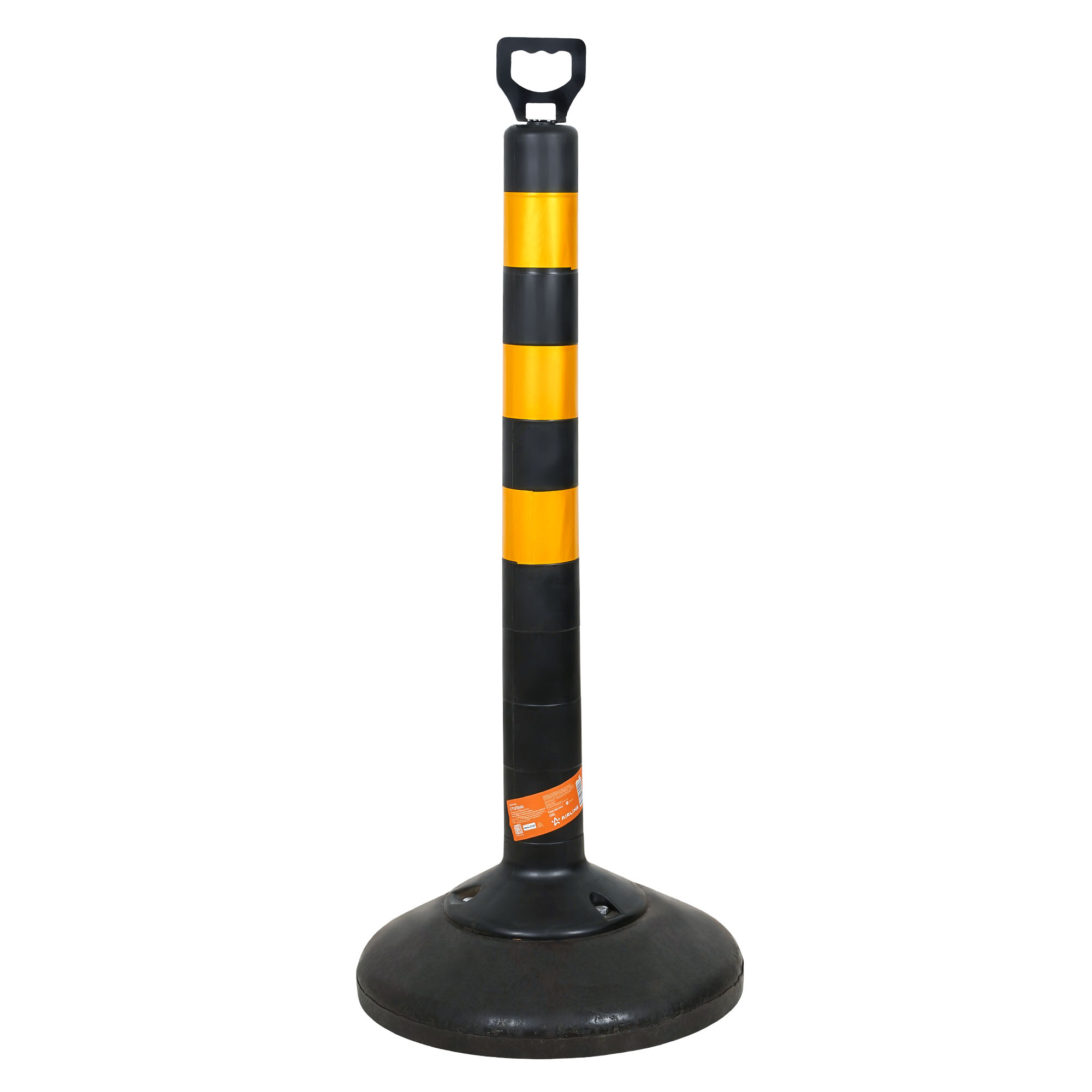 Столбик используется, как ограждение при проведении дорожно-строительных работ или для обозначения парковочных мест, перераспределения транспортных потоков, для обозначения аварийных участков и мест ДТП и т.п. Столбик изготовлен из экологически безопасного специализированного полимерного композита черного цвета и оснащен светоотражающими полосами, делающими его заметным в темное время. Материал основания: полимер-песчаная смесь.Оснащен верхней металлической ручкой для возможной переноски и за которую зацепляется оградительная цепочка или лента. Применение: Дорожно-ремонтные работы; Парковки; Отделения пешеходных зон; Аэропорты; Торговые центры;