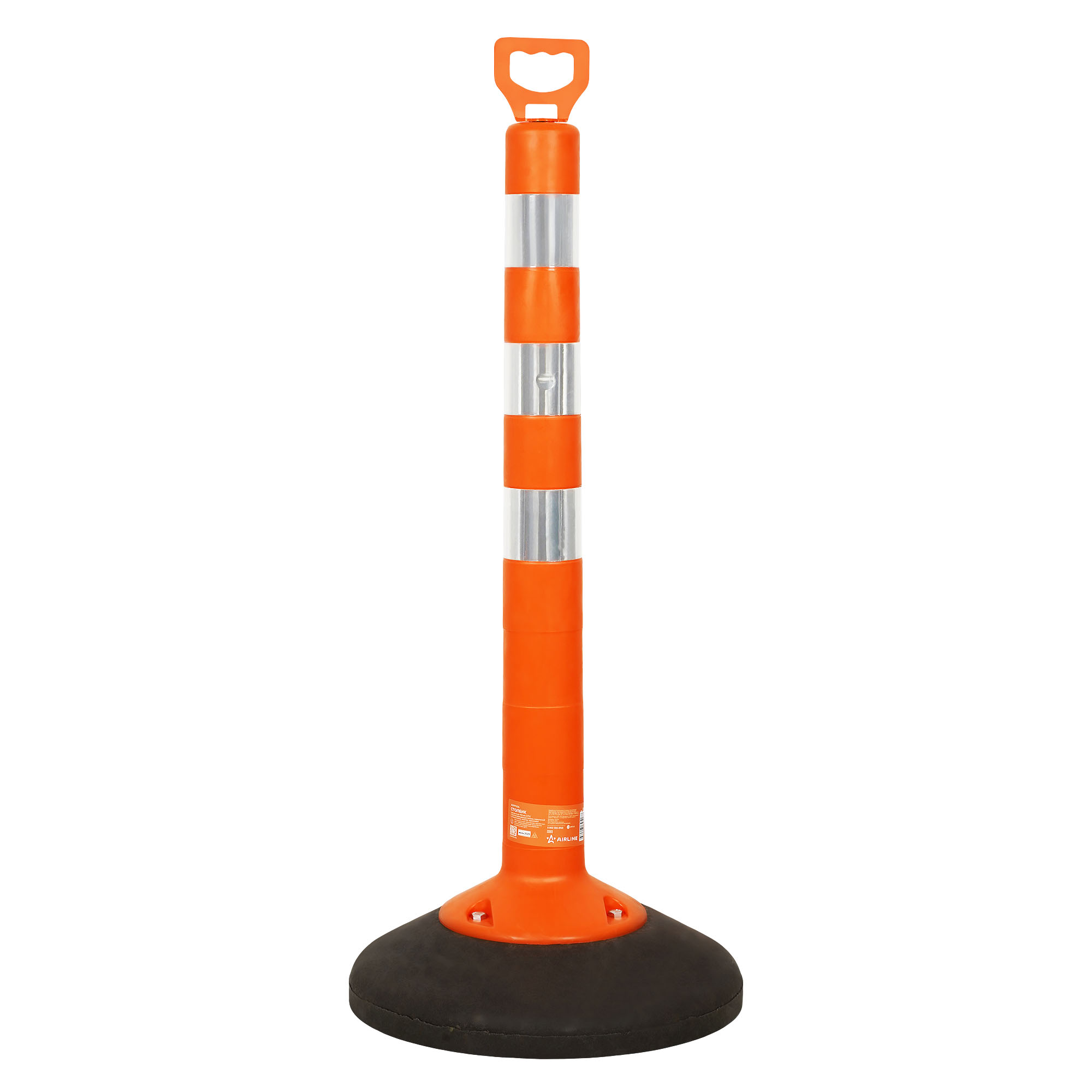 Столбик используется, как ограждение при проведении дорожно-строительных работ или для обозначения парковочных мест, перераспределения транспортных потоков, для обозначения аварийных участков и мест ДТП и т.п. Столбик изготовлен из экологически безопасного специализированного полимерного композита ярко оранжевого цвета и оснащен светоотражающими полосами, делающими его заметным в темное время.Мобильный за счет установки на утяжелитель, который служит подставкой. Оснащен верхней металлической ручкой для возможной переноски и за которую зацепляется оградительная цепочка или лента.Применение: Дорожно-ремонтные работы; Парковки; Отделения пешеходных зон; Аэропорты; Торговые центры;