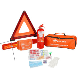 Набор автомобилиста базовый "ЭКО" ANA-00 включает знак аварийной остановки,порошковый огнетушитель ОП1, аптечка первой медицинской помощи в пластиковом кейсе.