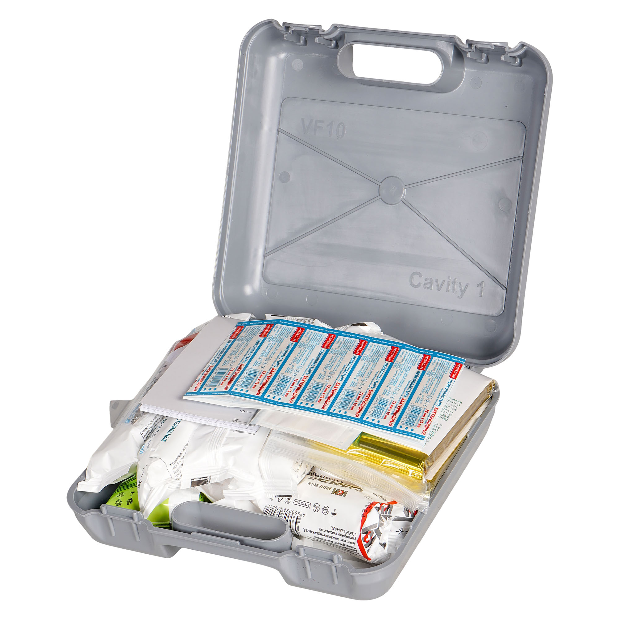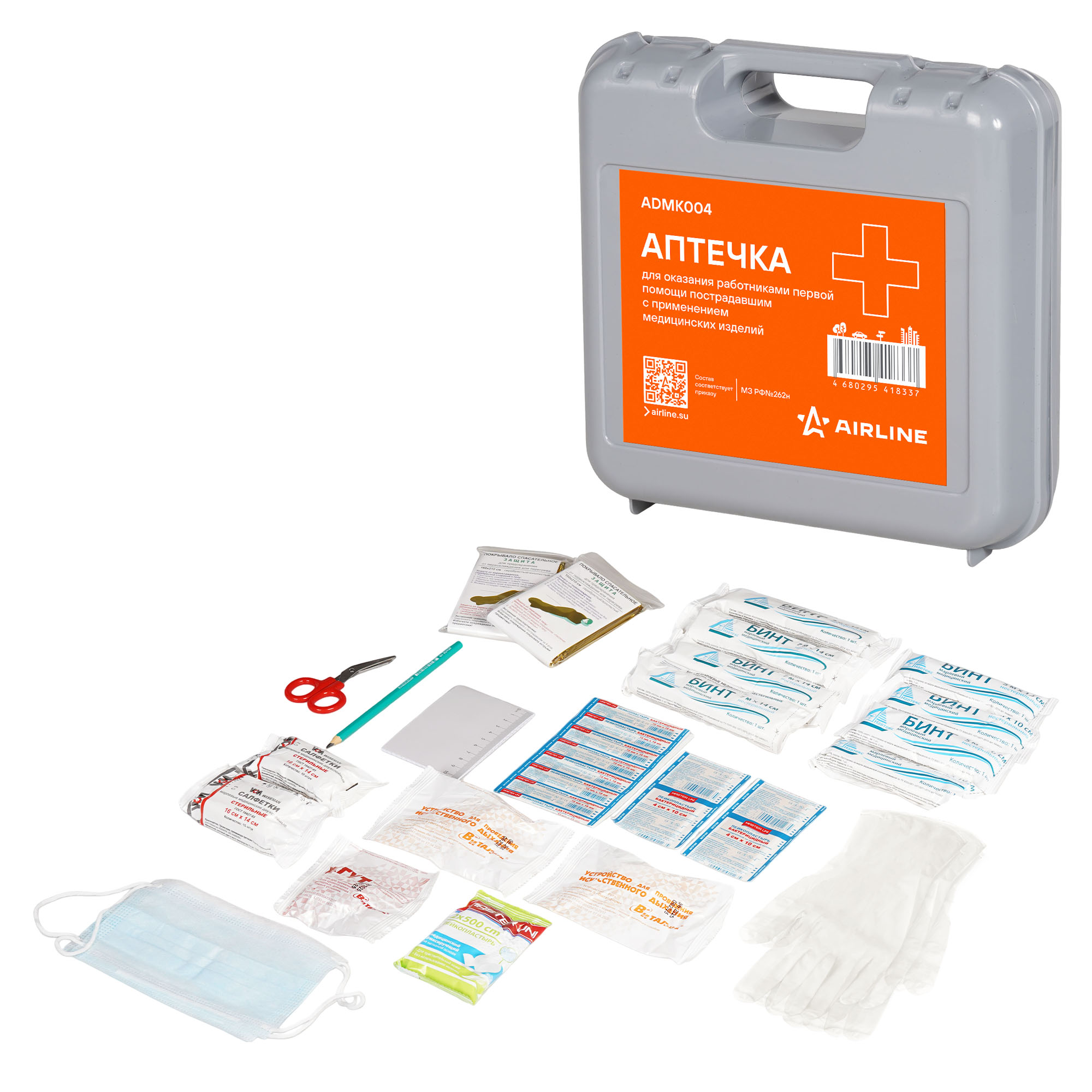 Предназначена для оказания работниками первой помощи пострадавшим с применением медицинских изделий. Представляет собой пластиковый кейс с ручкой, удобной плоской формы, изготовленный из ударопрочного пластика, укомплектованный медицинскими изделиями первой необходимости. Используется для оказания первой помощи с применением медицинских изделий пострадавшим на рабочих местах. Аптечка оснащена полным набором медицинских средств в соответ. приказом Минздрава России №262н от 24.05.2024 г.
