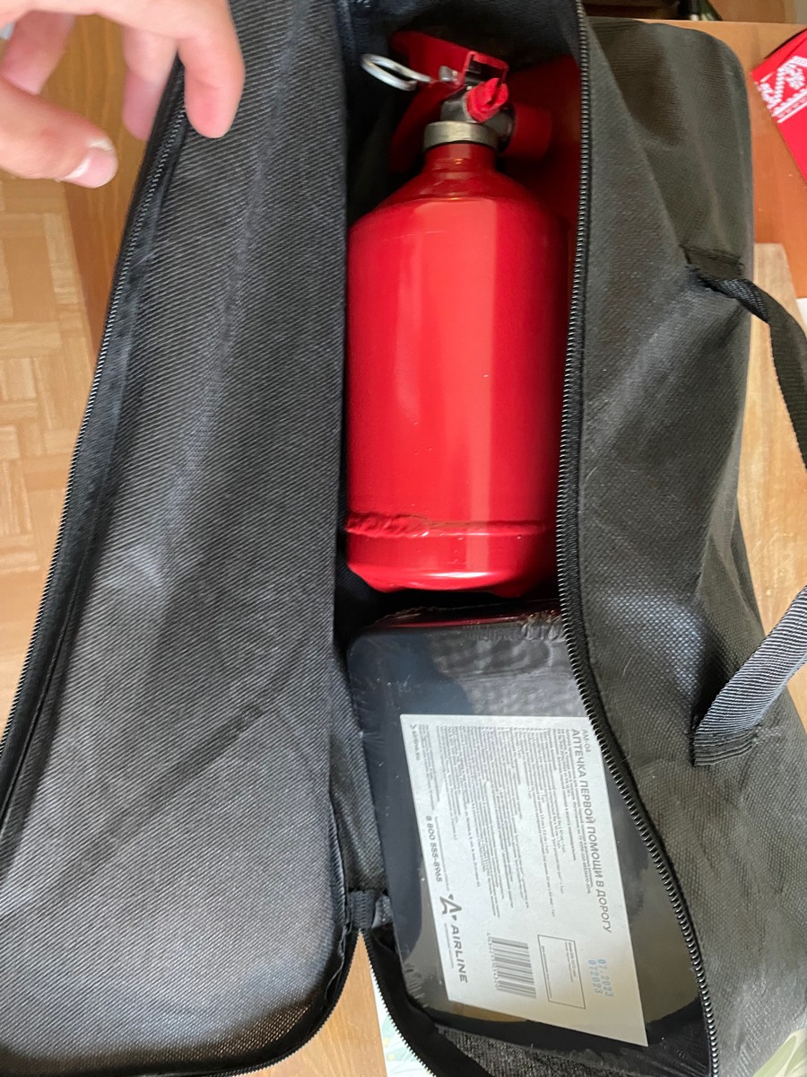 Поступило во время, все целое без брака и повреждений. Как начинающий водитель не знаю достаточно ли такого огнетушителя или нет. Кажется маленьким.
