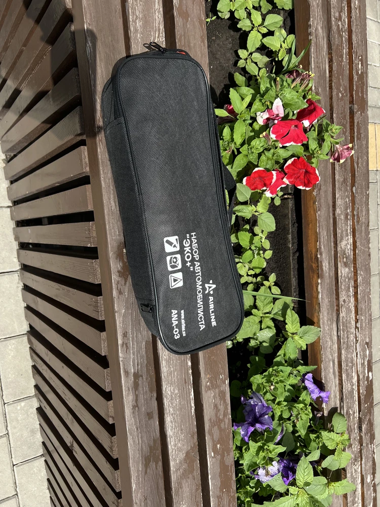 Автомобильный набор серии ЭКО+ оснащен базовой комплектацией необходимых каждому автомобилисту принадлежностей. В комплект включены средства первой необходимости, среди которых: знак, обозначающий экстренную остановку, огнетушитель ОП1, а также аптечка с превязочным материалом для оказания первой медицинской помощи.