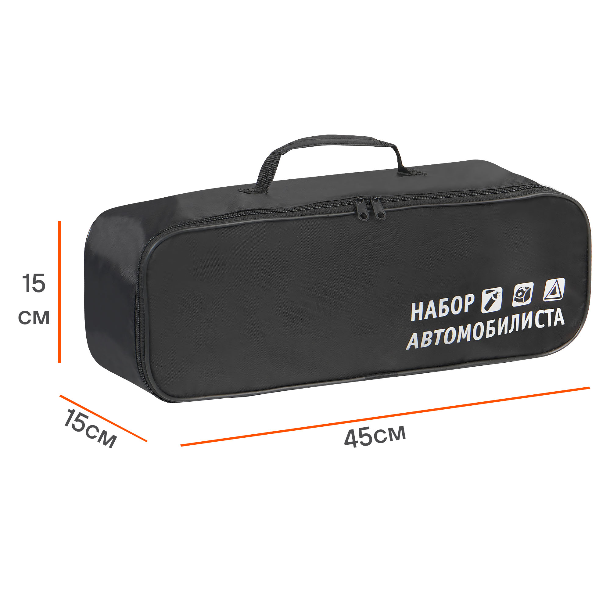 Сумка предназначена для самостоятельной комплектации "Набора автомобилиста" всеми необходимыми в дороге аксессуарами регламентируемых законом, такими как аптечка, огнетушитель, светоотражающий жилет, а так же дополнительными изделиями на свое усмотрение. Сумка имеет липучку для крепления к ворсистой поверхности багажника.