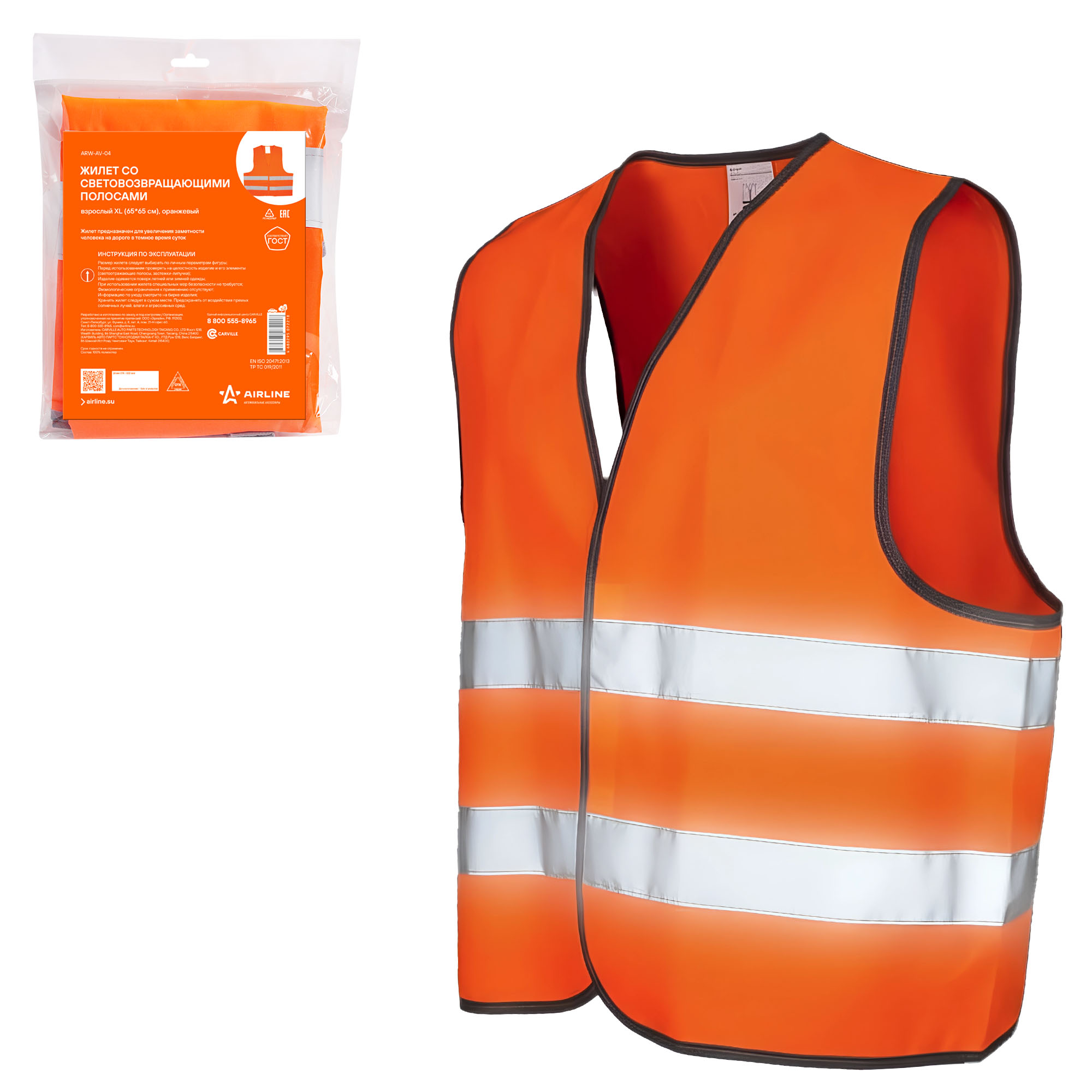 Жилет со светоотражающими свойствами является первым средством обеспечения безопасности на дороге. Изделие широко используется во время строительных или ремонтных работ, когда в темное время суток необходимо создать лучшие условия видимости. Жилет предназначен для использования взрослыми и имеет размер XL(65*65см). Изделие изготовлено в ярко-оранжевом цвете, с нанесением на поверхность жилета светоотражающей ленты.