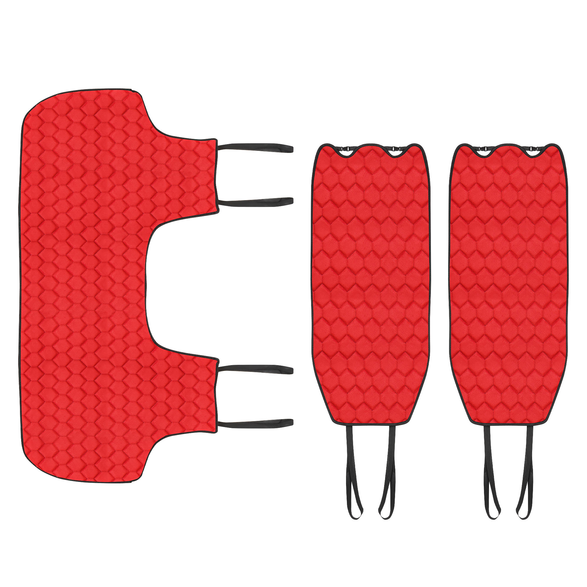 Накидки сшиты из износоустойчивой ворсовой мебельной ткани и защищают штатную обивку от истирания и выцветания. Идеально подходят к кожаному салону, обеспечивая комфортную температуру при контакте с сиденьем в холодную и жаркую погоду, а стеганый дизайн придает салону домашний комфорт и уют; Благодаря своей форме накидки позволяют без затруднений надевать их на кресла любого типа, не прибегая к демонтажу подголовников и подлокотников, а так же не препятствует раскрытию подушек безопасности. Все модели, имеют универсальную систему крепления позволяющую применять изделие на 99% существующего автопарка России. Комплект состоит из накидок на заднее сиденье из трех частей.