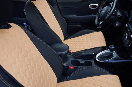 Накидки сшиты из износоустойчивой ворсовой мебельной ткани и защищают штатную обивку от истирания и выцветания. Идеально подходят к кожаному салону, обеспечивая комфортную температуру при контакте с сиденьем в холодную и жаркую погоду, а стеганый дизайн придает салону домашний комфорт и уют. Благодаря своей форме накидки позволяют без затруднений надевать их на кресла любого типа, не прибегая к демонтажу подголовников и подлокотников, а так же не препятствует раскрытию подушек безопасности. Все модели, имеют универсальную систему крепления позволяющую применять изделие на 99% существующего автопарка России.