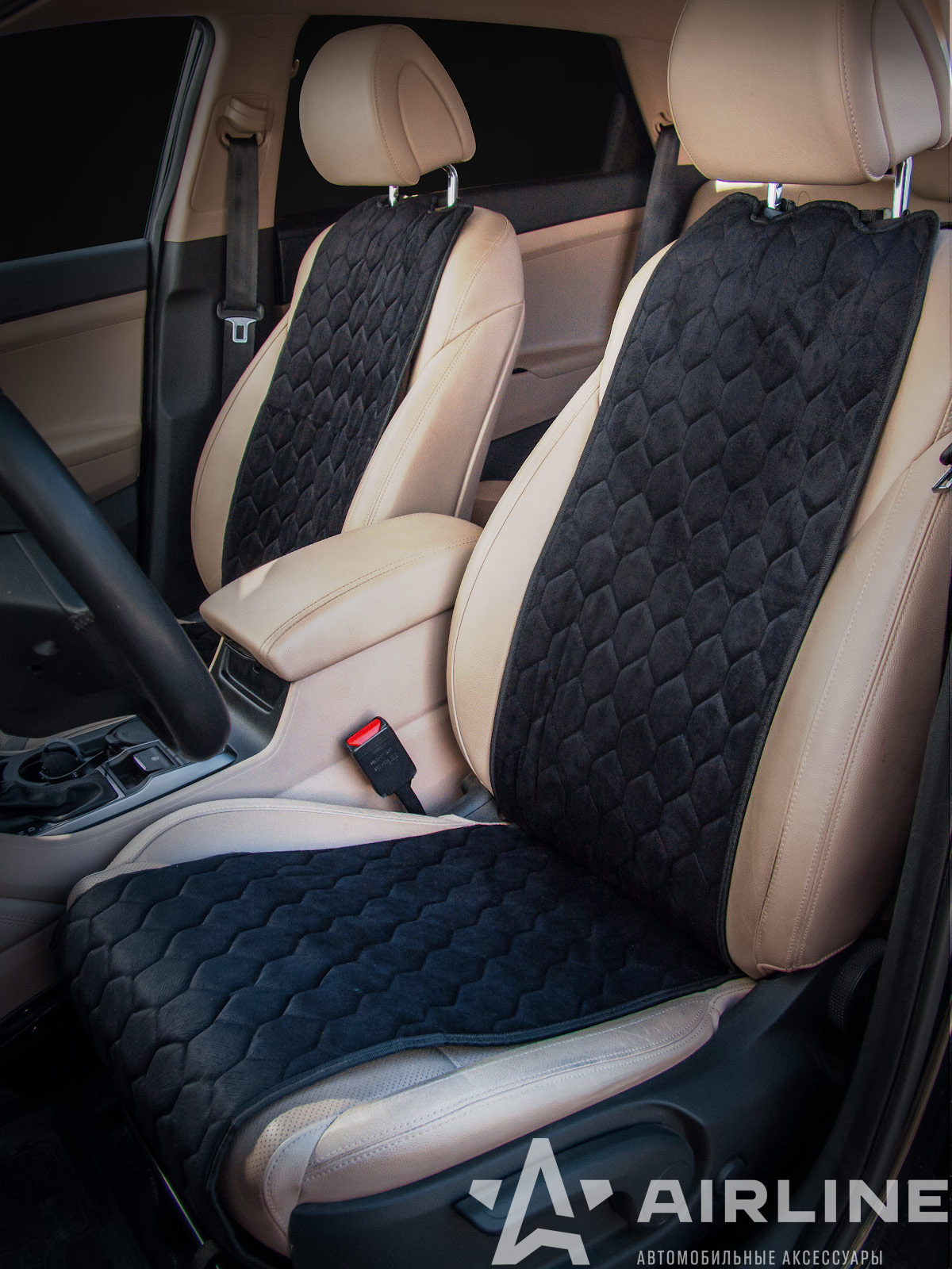 Накидки сшиты из износоустойчивой ворсовой мебельной ткани и защищают штатную обивку от истирания и выцветания. Идеально подходят к кожаному салону, обеспечивая комфортную температуру при контакте с сиденьем в холодную и жаркую погоду, а стеганый дизайн придает салону домашний комфорт и уют. Благодаря своей форме накидки позволяют без затруднений надевать их на кресла любого типа, не прибегая к демонтажу подголовников и подлокотников, а так же не препятствует раскрытию подушек безопасности. Все модели, имеют универсальную систему крепления позволяющую применять изделие на 99% существующего автопарка России.