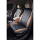 Накидки сшиты из современой экокожи и защищают штатную обивку от истирания и выцветания. Имеют стеганый дизайн с оригинальным рисунком, что придает салону домашний комфорт и уют; Благодаря своей форме накидки позволяют без затруднений надевать их на кресла любого типа, не прибегая к демонтажу подголовников и подлокотников, а так же не препятствует раскрытию подушек безопасности. Все модели, имеют универсальную систему крепления позволяющую применять изделие на 99% существующего автопарка России. Комплект состоит из двух накидок на переднии сиденья.