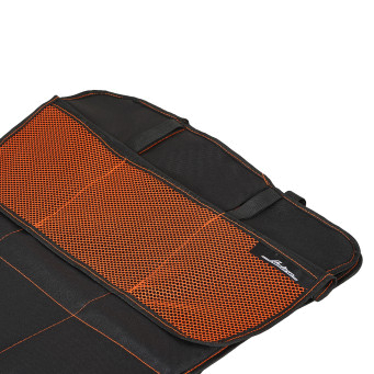 Защитная накидка изготовлена специально для подложки под детское автокресло и имеет размерные характеристики 108х46 см. Накидка имеет высокую спинку, изготовлена из прочного легко моющегося полиэстера. Внутри накидки находится подложка из вспененного полиэтилена, которая защищает тканевую или кожаную обивку сидений от деформации (замятия) и различного рода загрязнений. Накидки имеют универсальные крепления и легко крепятся к сидению. В передней части накидки расположены карманы для мелких предметов. .