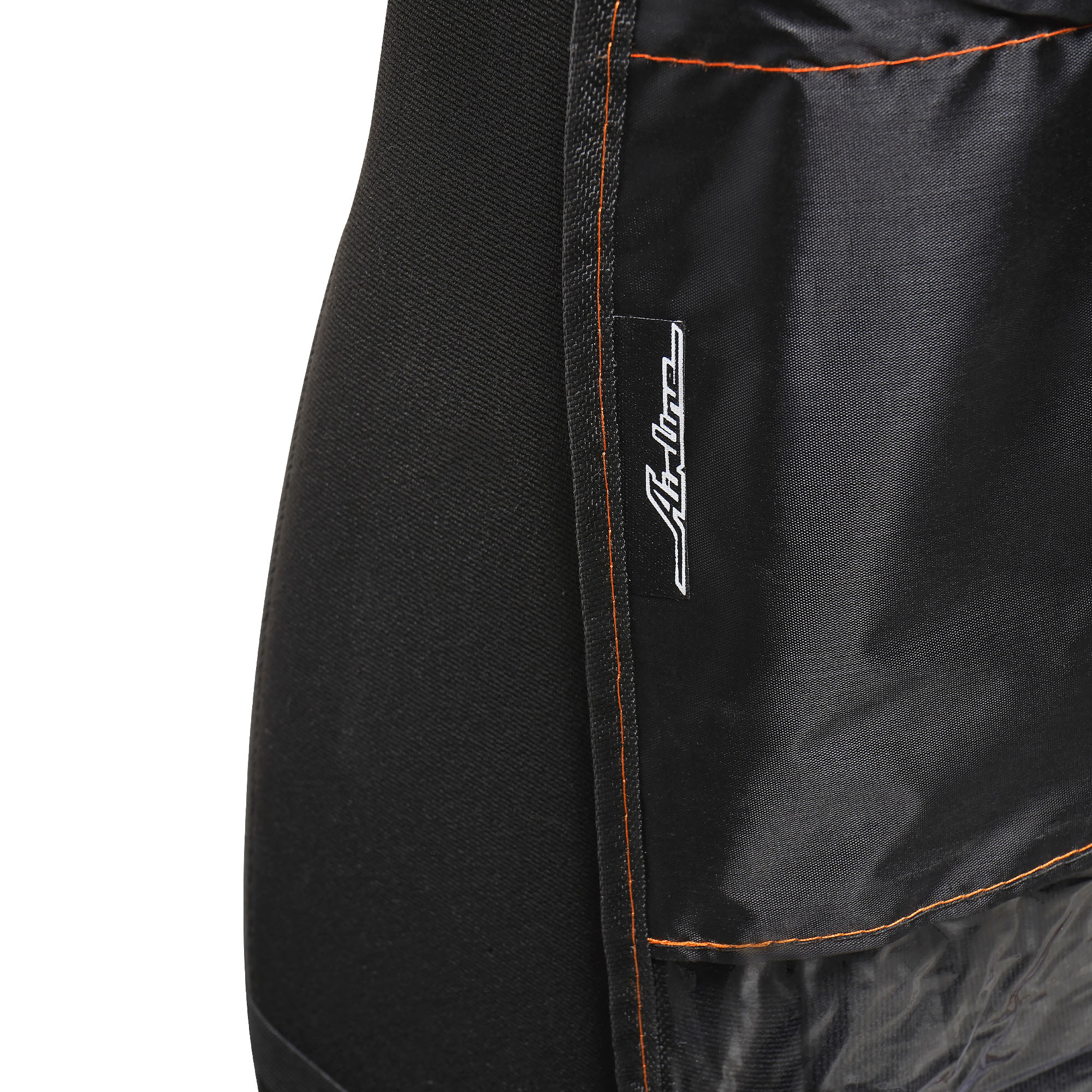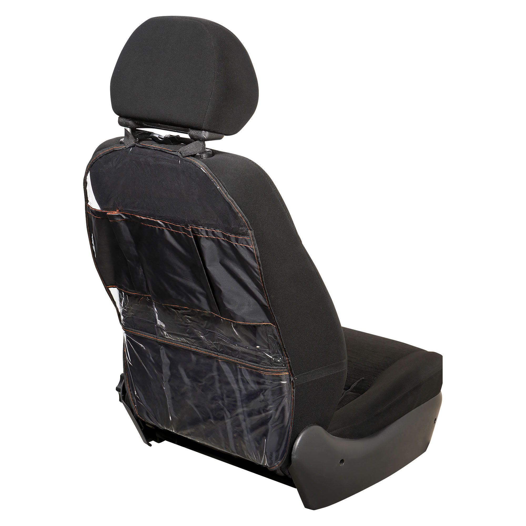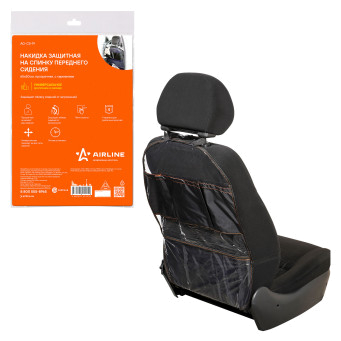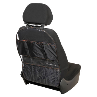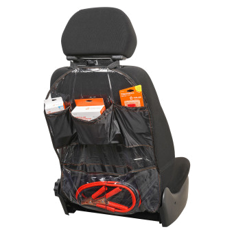 Накидка на спинку сиденья является не только предохраняет от загрязнений, но так же играет роль автомобильного органайзера. Размер изделия 65х50 см покрывает всю площадь поверхности спинки сиденья. Накидка изготовлена из прочной прозрачной пленки и полиэстеровых вставок. Карманы на накидке помогают поддержанию порядка в машине и позволяют хранить автомобильные принадлежности в одном месте.