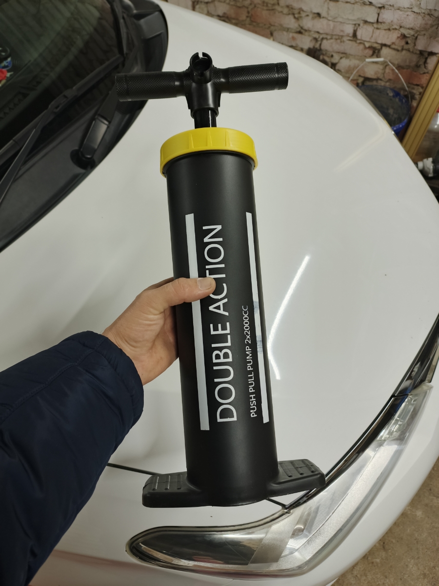 Насос ручной для накачки надувных изделий- матрасы, лодки, надувные игрушки. Насос двойного действия- воздух закачивается как при движении поршня вверх, так и вниз.