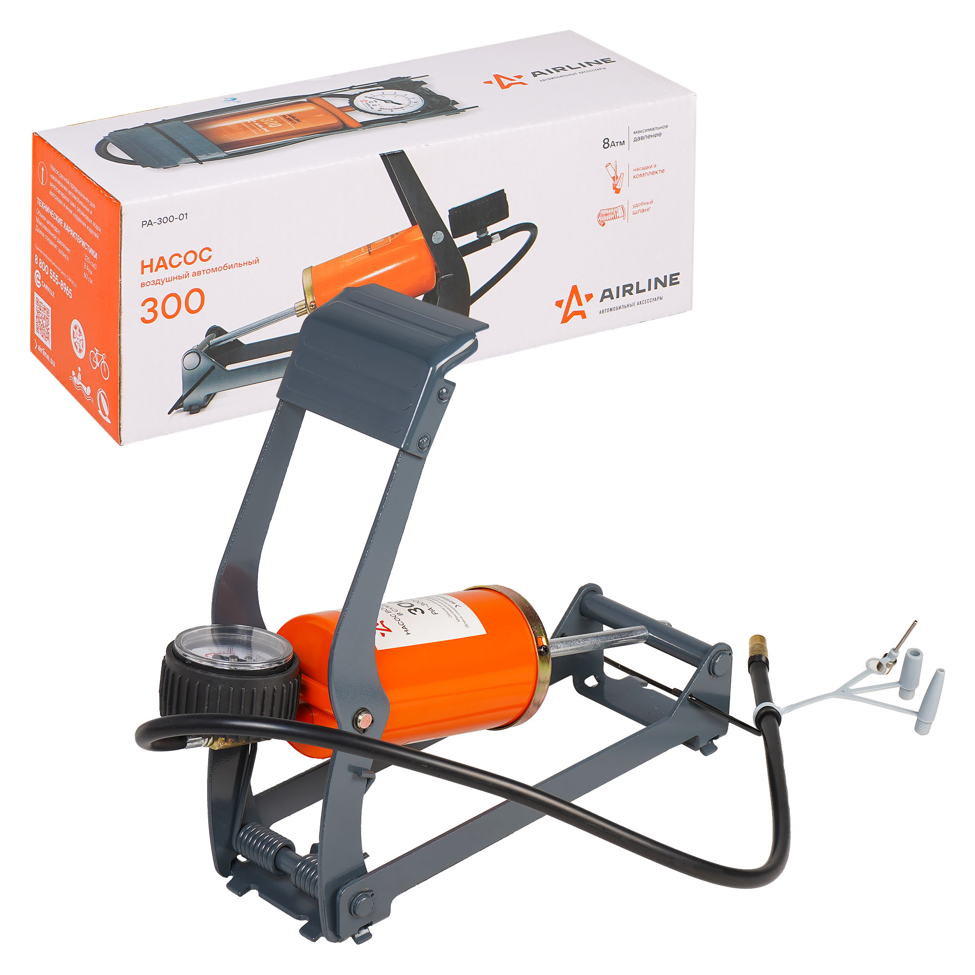 Насос воздушный ножной механический AIRLINE имеет улучшенную хорошо зарекомендовавшую себя "советскую" конструкцию. Компактные размеры и легкость в накачивании колес и других надувных изделий сделали насос популярным среди автолюбителей. В отличии от компрессора, насос не зависит от бортовой сети автомобиля и наличия прикуривателя. Встроенный манометр, цельнометаллическое основание, отсутствие сварных элементов (только в одном месте), металлический патрон и полностью разборная конструкция делают насос практически вечным. Несмотря на достаточно большую емкость цилиндра, насос работает очень плавно - это заслуга наших инженеров, сумевших создать особенную конструкцию педали. В основании насоса вырублены специальные "зубья" препятствующие его выскальзыванию из под ноги во время работы. Смазка и материалы в насосах морозостойкие - вы сможете накачать колесо даже зимой.