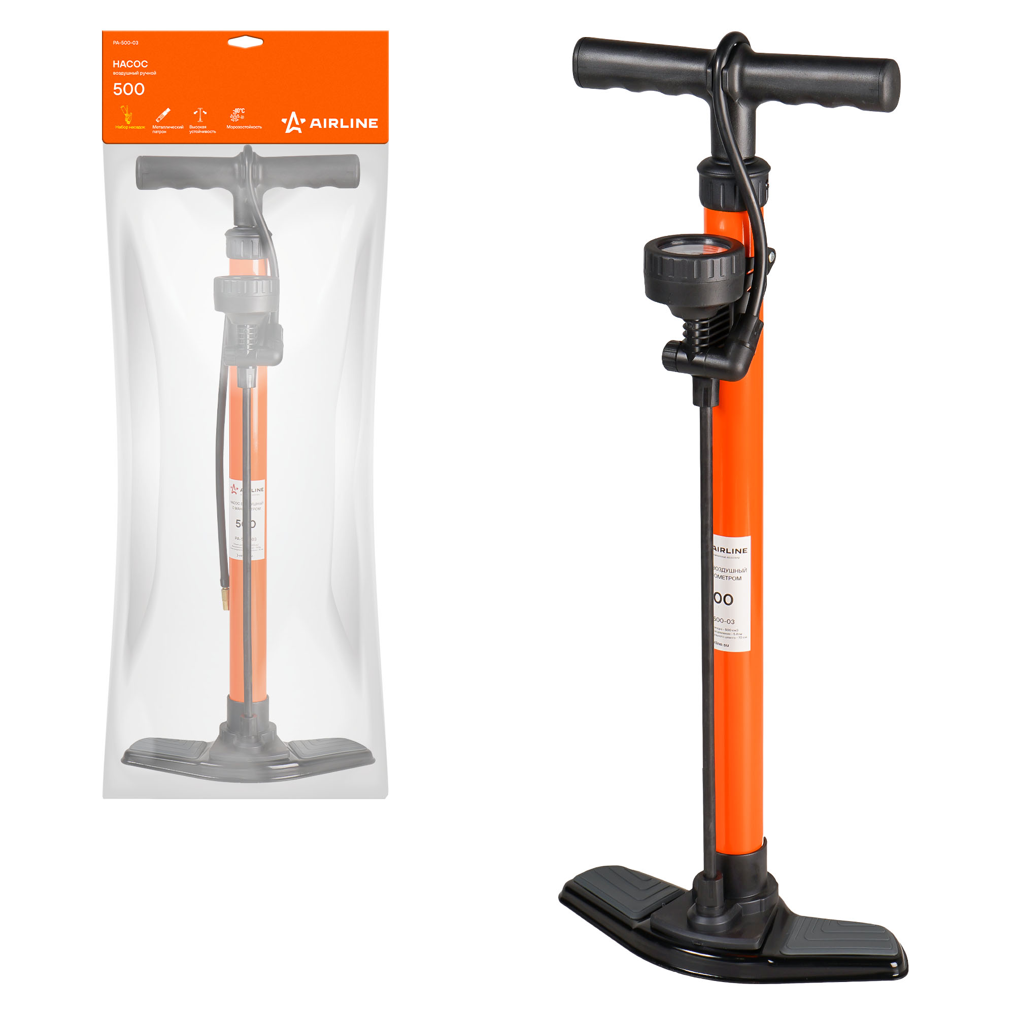 Насос с самой большой емкостью цилиндра 500 см3!!! Представлен в традиционной форме хорошо знакомого ручного насоса, изготовлен с использованием высокопрочных материалов, которые не подвержены перепадам температур и коррозии при морозных условиях. Длина соединительного провода устройства составляет 70 см. Данной длины достаточно для комфортной эксплуатации насоса. Насос имеет манометр, который можно закрепить в любом удобном месте. Металлический патрон и насадки, которые хранятся в ручке насоса, позволят гарантированно добраться до ниппеля любого колеса, а так же накачать другие надувные изделия.