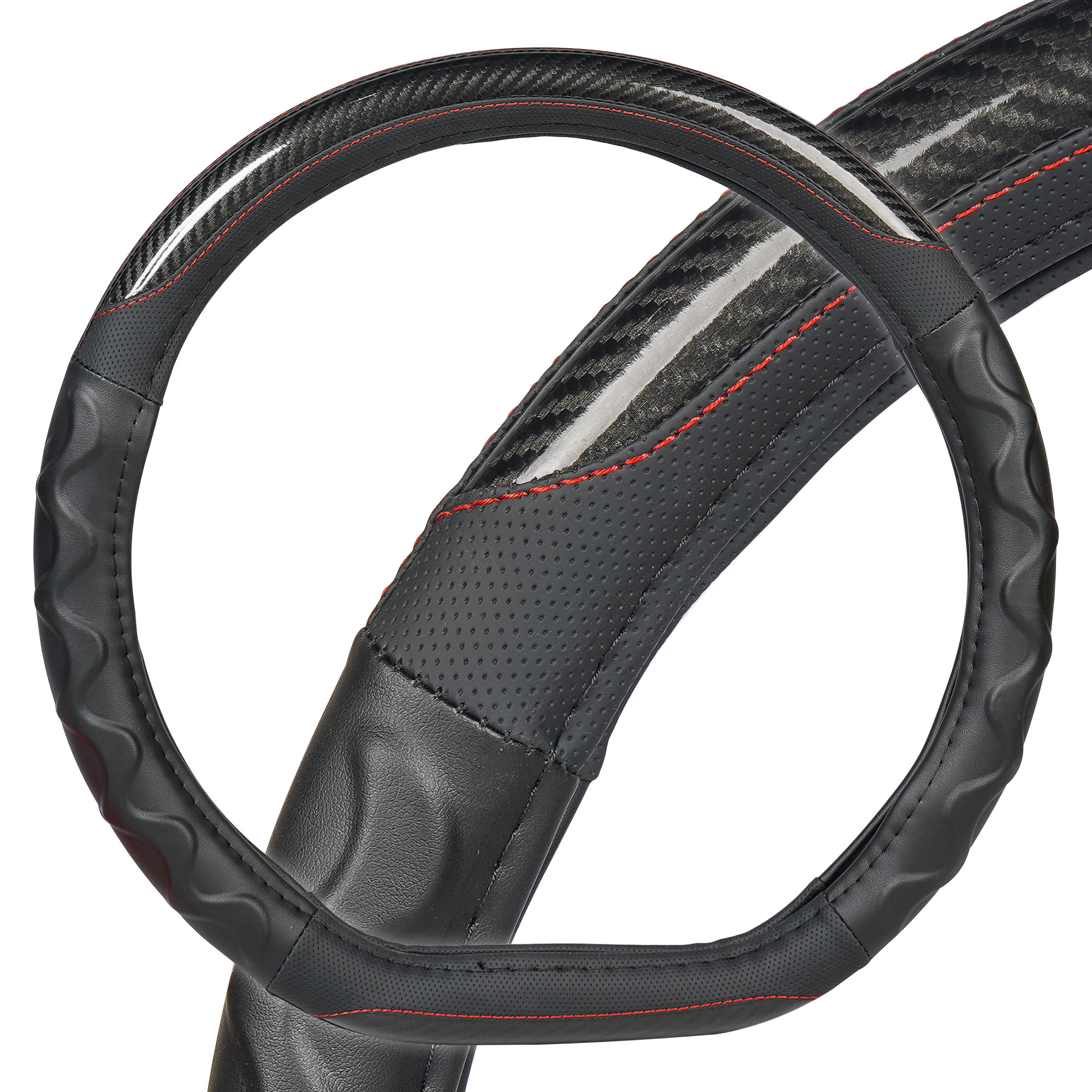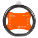 Оплетка поможет украсить салон вашего автомобиля и сделать его еще более стильным и современным. Оплетка также обладает массой полезных свойств: защищает руль от грязи, пыли и механических повреждений. Изготовлена из искусственной кожи черного цвета с черной прошивкой. Кожа имеет текстуру имитирующую карбон. Подходит только для рулевых колес имеющих D-образную форму каркаса.