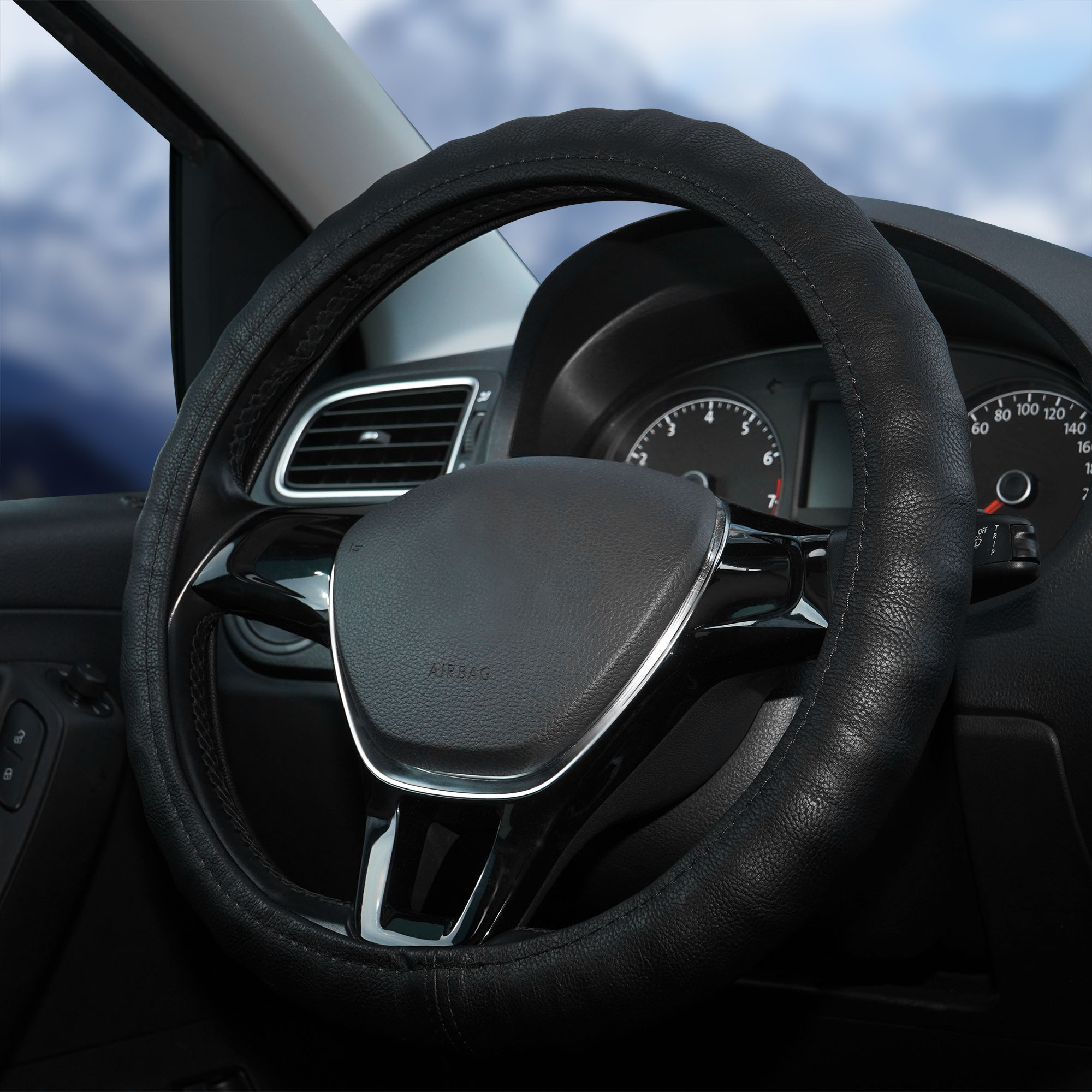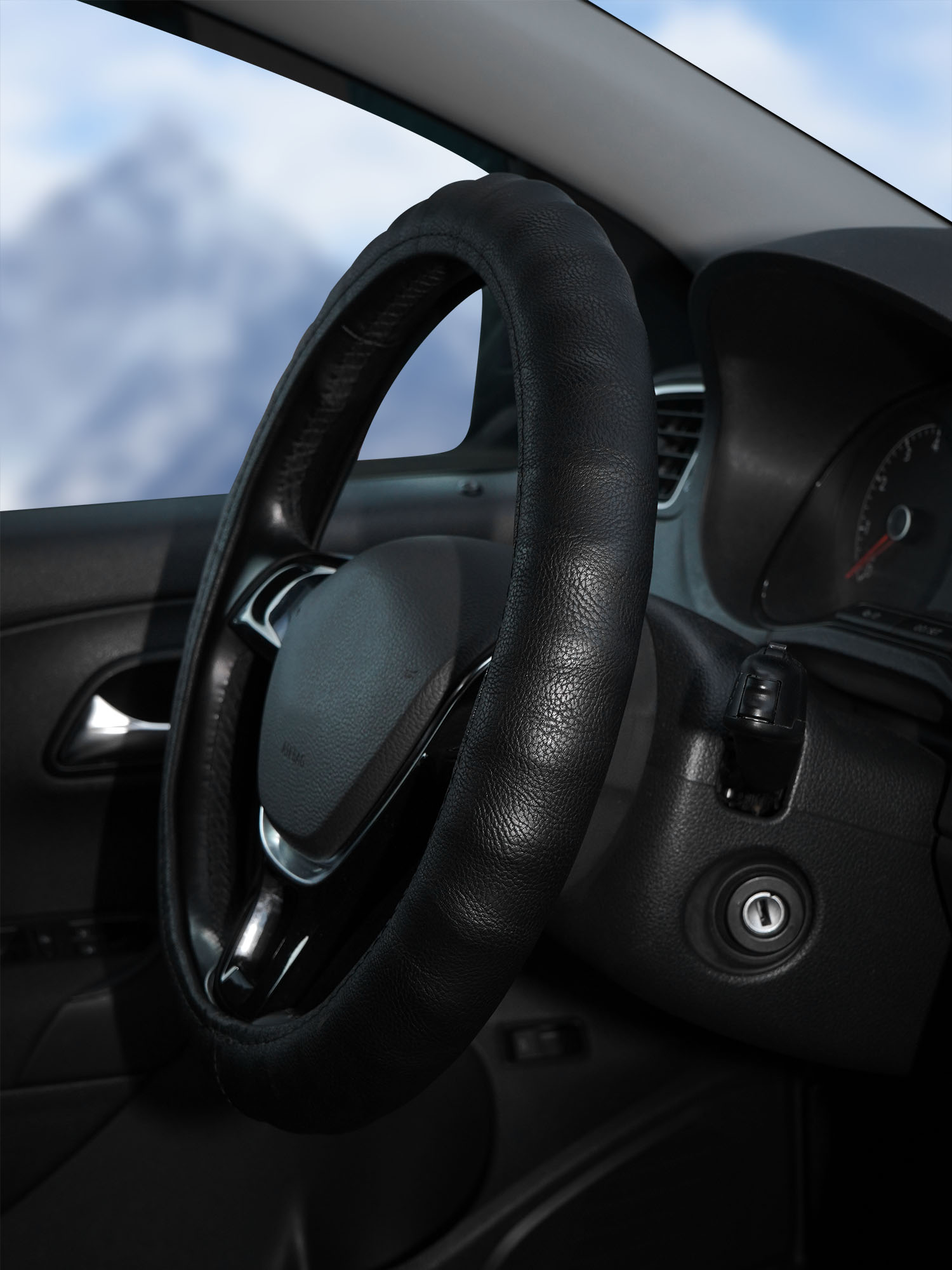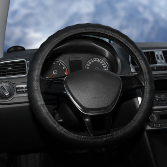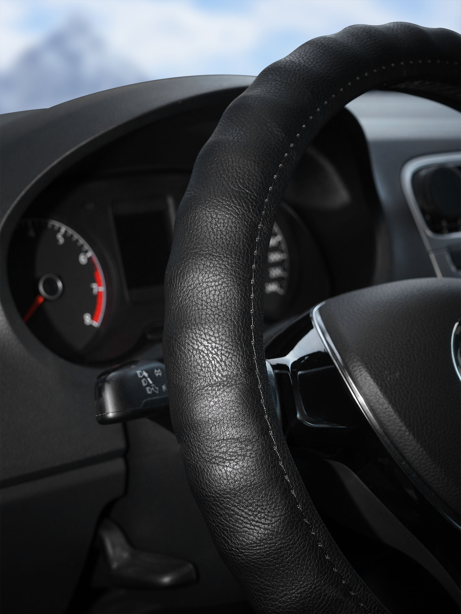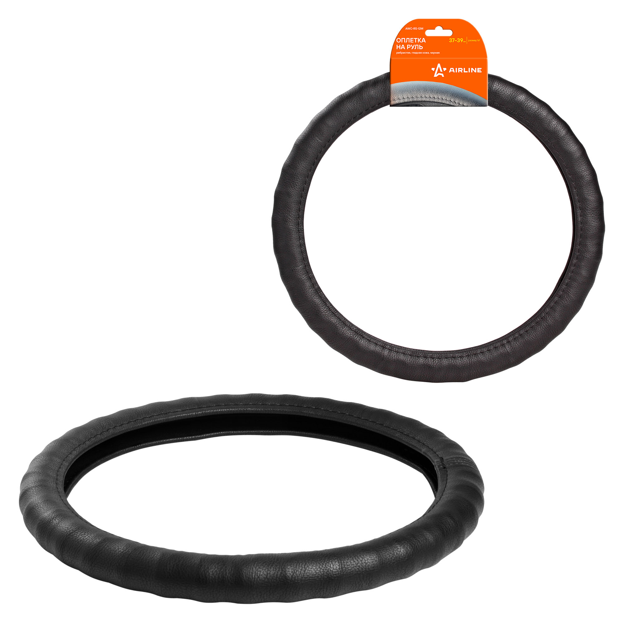 Оплетка на руль, гладкая кожа, ребристая, черная, 37-39 см/М