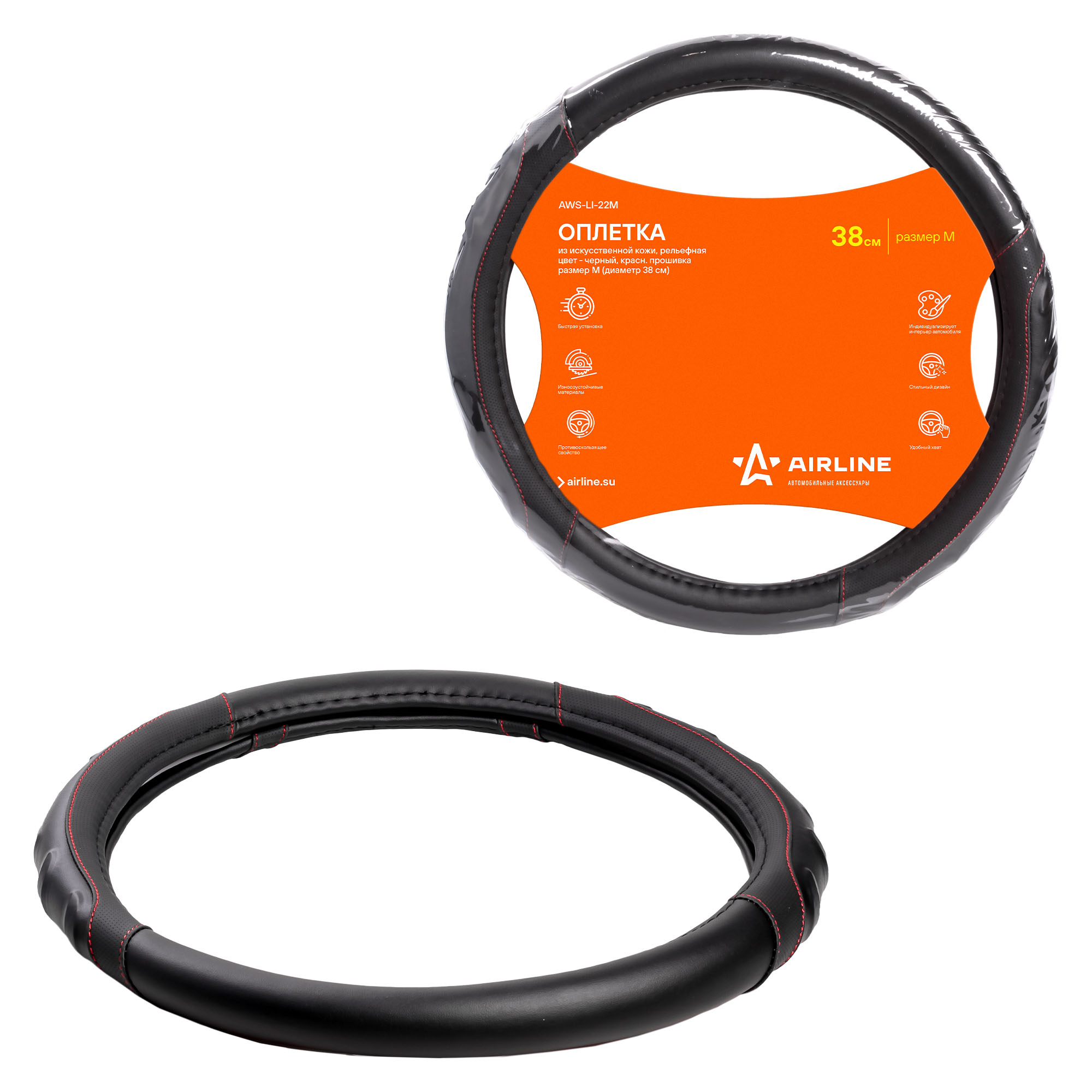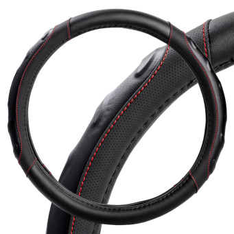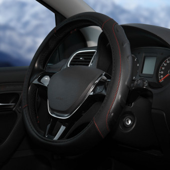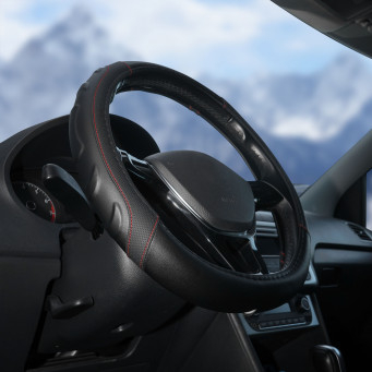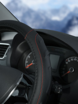Оплетка поможет украсить салон вашего автомобиля и сделать его еще более стильным и современным. Оплетка также обладает массой полезных свойств: защищает руль от грязи, пыли и механических повреждений. Изготовлена из искусственной кожи черного цвета с красной прошивкой.
