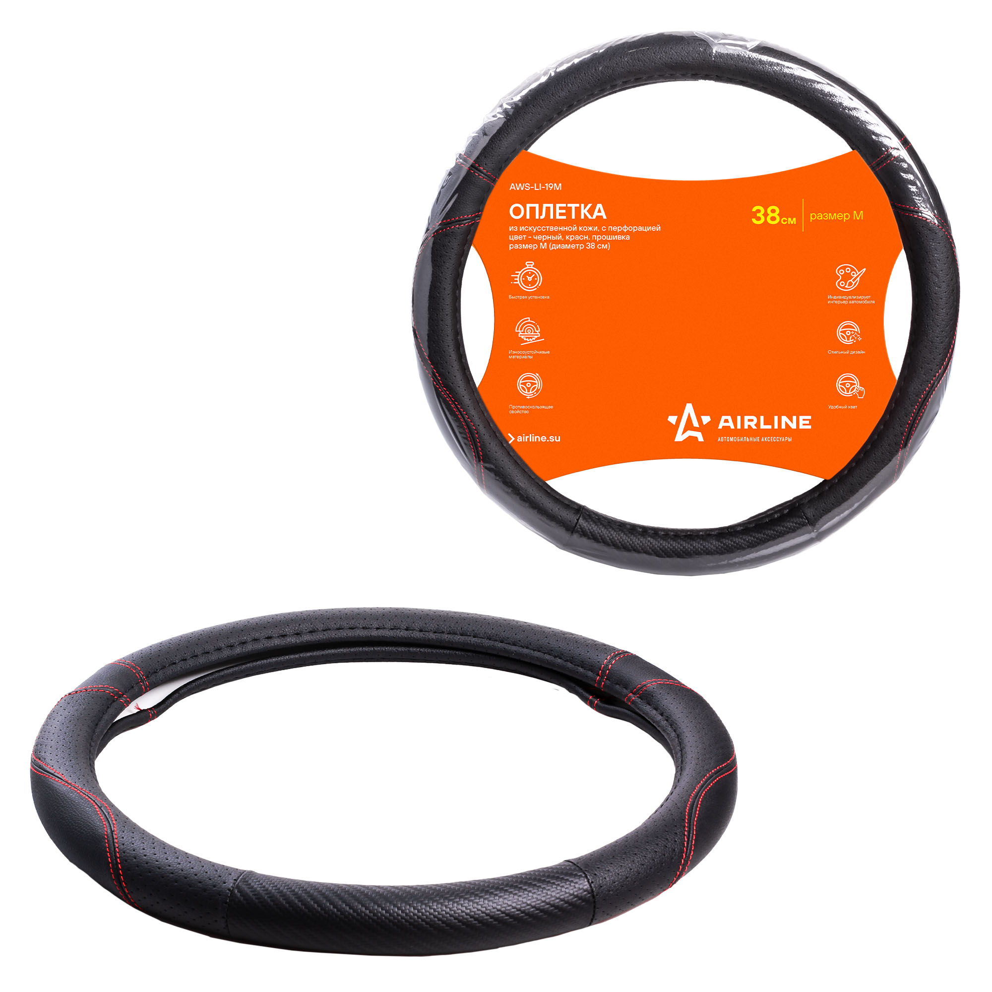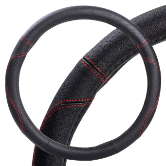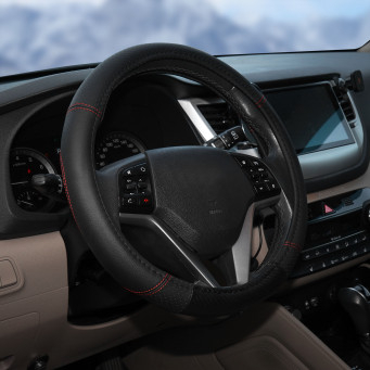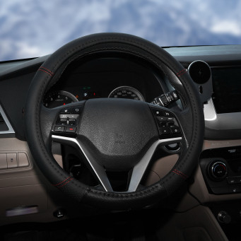 Оплетка поможет украсить салон вашего автомобиля и сделать его еще более стильным и современным. Оплетка также обладает массой полезных свойств: защищает руль от грязи, пыли и механических повреждений. Изготовлена из искусственной кожи черного цвета с красной прошивкой.