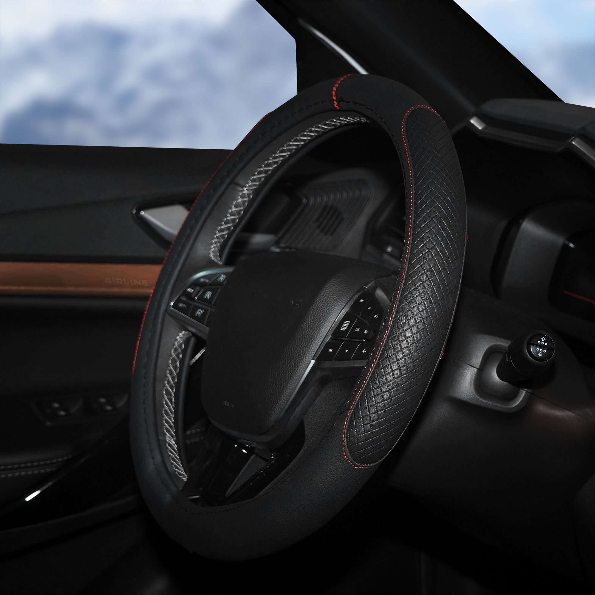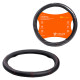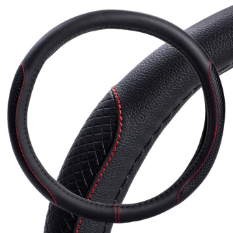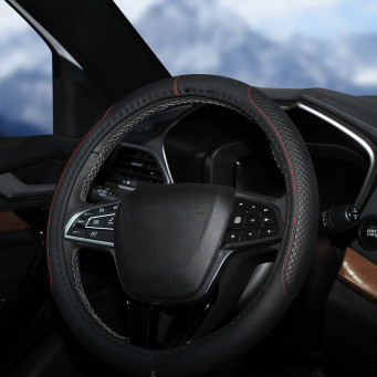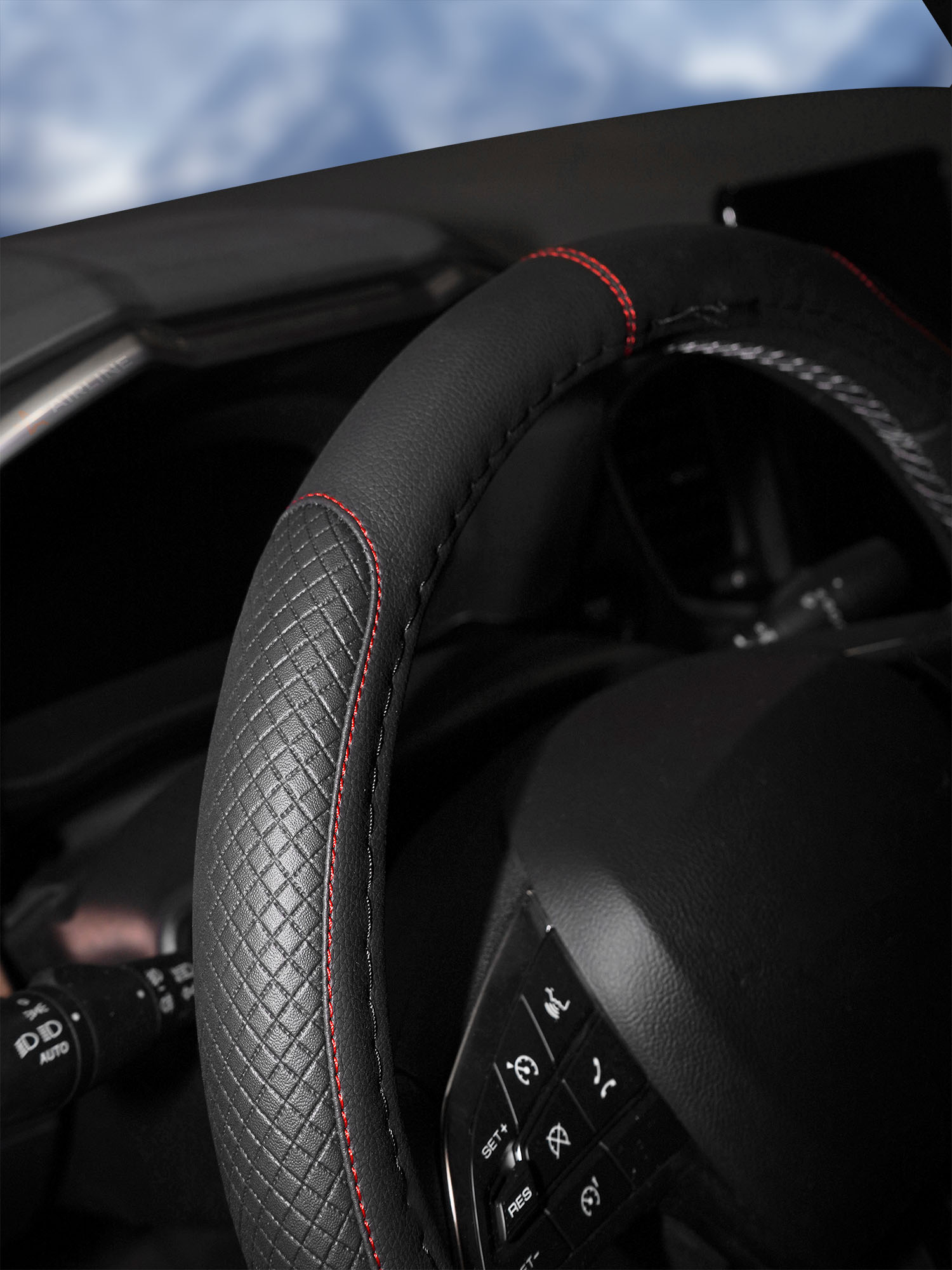 Оплетка поможет украсить салон вашего автомобиля и сделать его еще более стильным и современным. Оплетка также обладает массой полезных свойств: защищает руль от грязи, пыли и механических повреждений. Изготовлена из искусственной кожи черного цвета с красной прошивкой. По бокам оплетки кожа имеет ромбисеское тиснение.