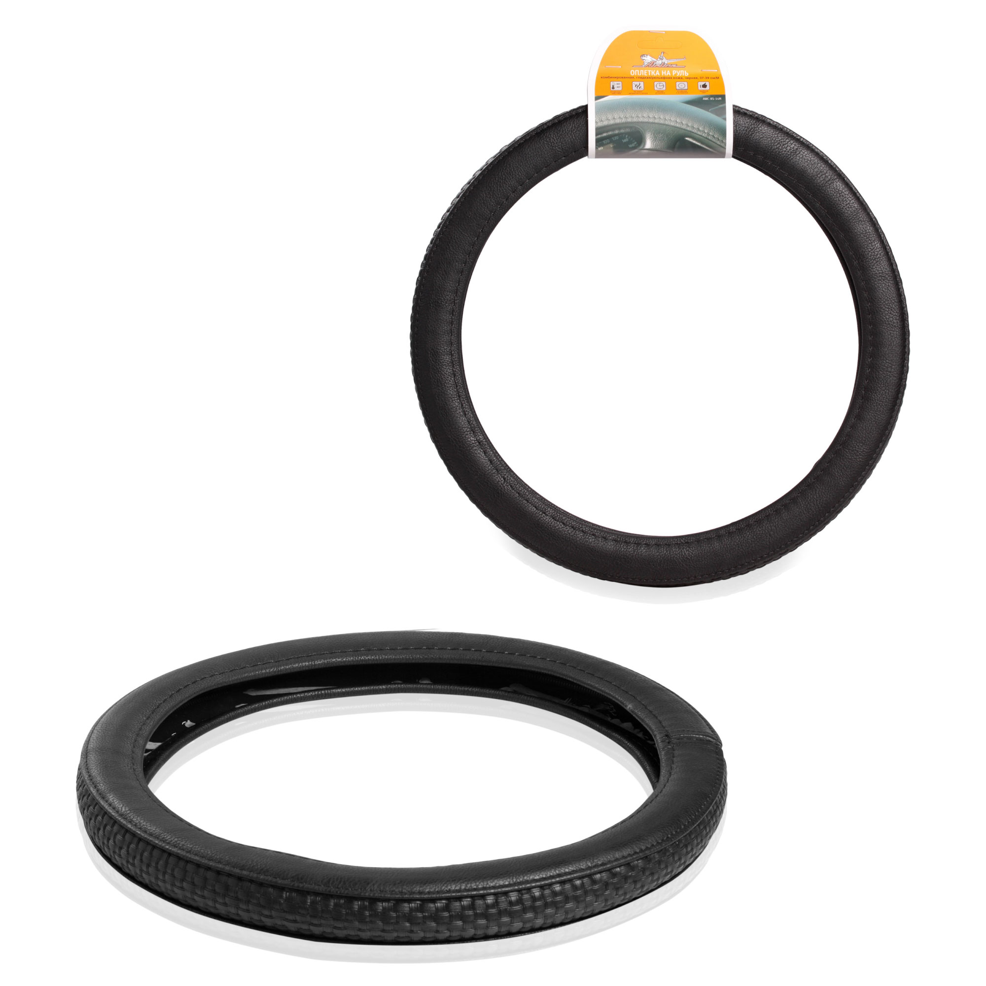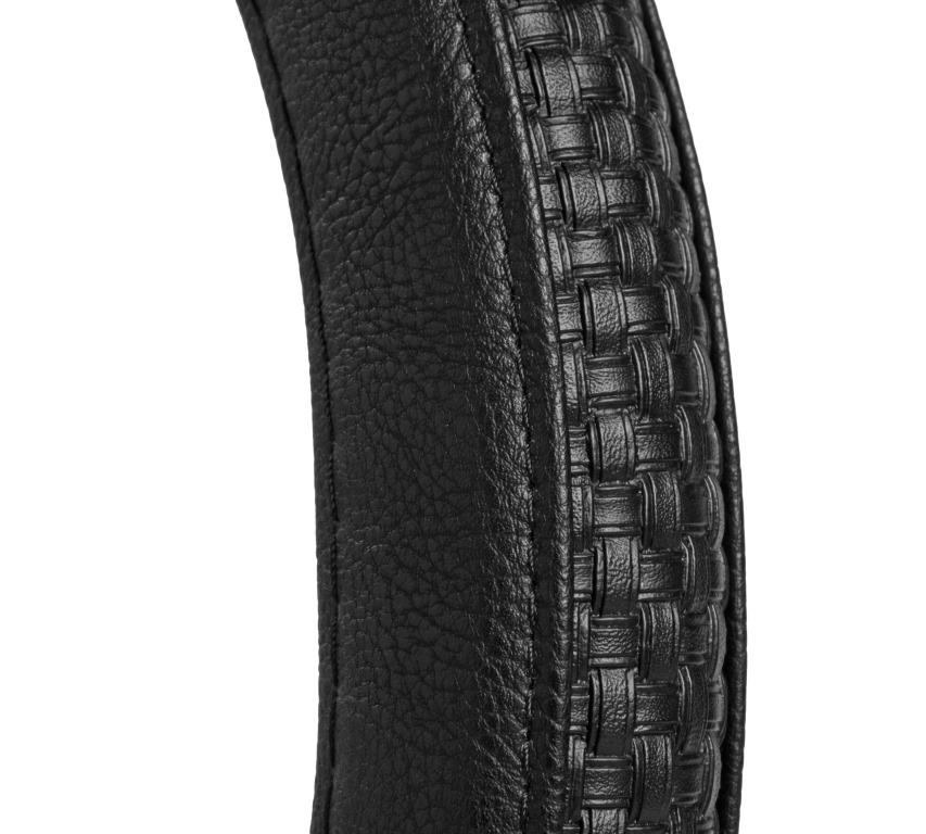 Оплетка на руль комбинированная, гладкая/рельфная кожа, черная, 37-39 см/М