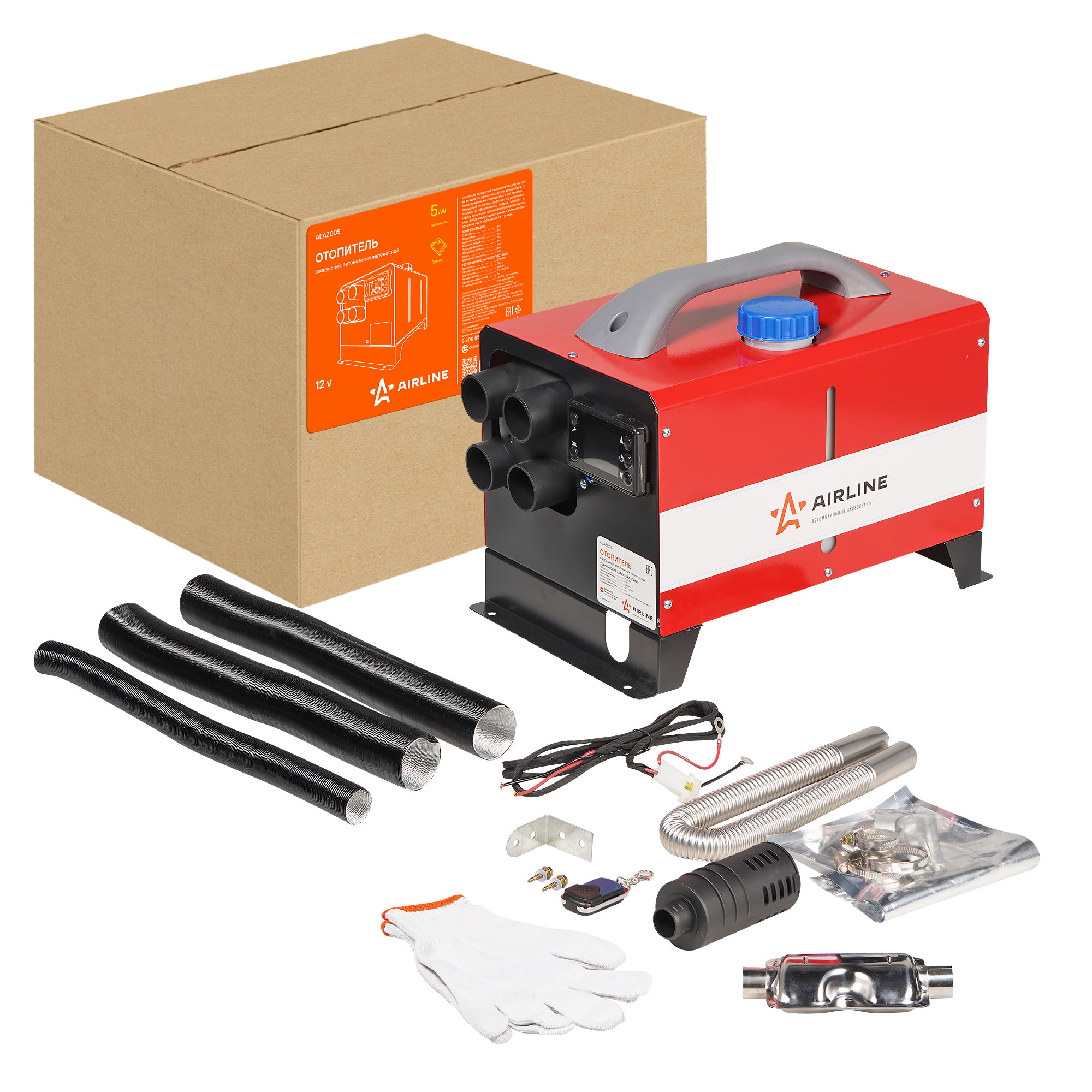Воздушный отопитель работает на дизельном топливе и обеспечивает нагрев воздуха в кабине или салоне автомобиля/катера/спецтехники. Забор воздуха для горения и выхлоп отработанных газов производится с улицы.