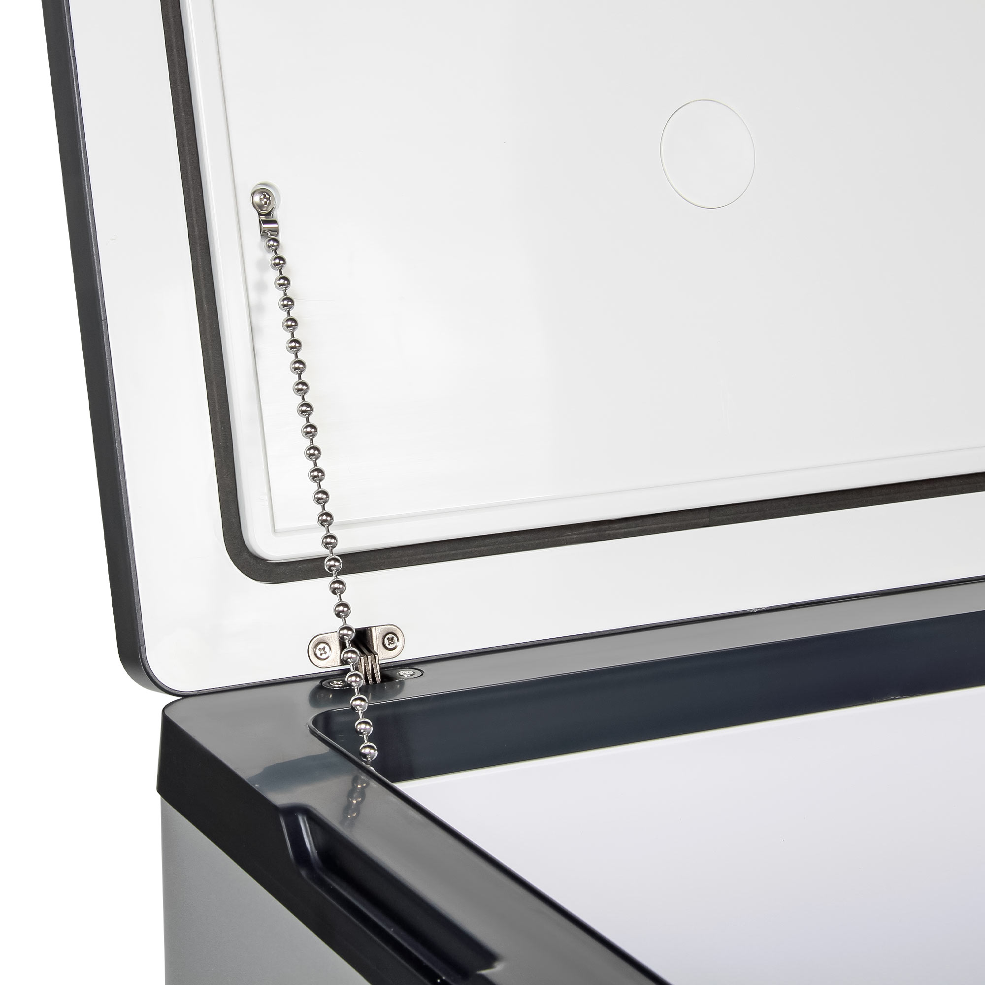 Железная цепь, которая фиксирует открытую крышку