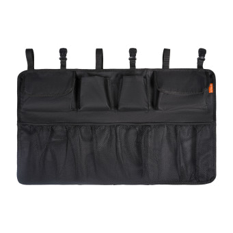 Применяется для компактного размещения различных аксессуаров в багажнике автомобиля. Крепится за подголовники заднего сиденья при помощи регулируемых фастексов. Закрывает всю площадь спинки. Имеет 8 вместительных карманов.