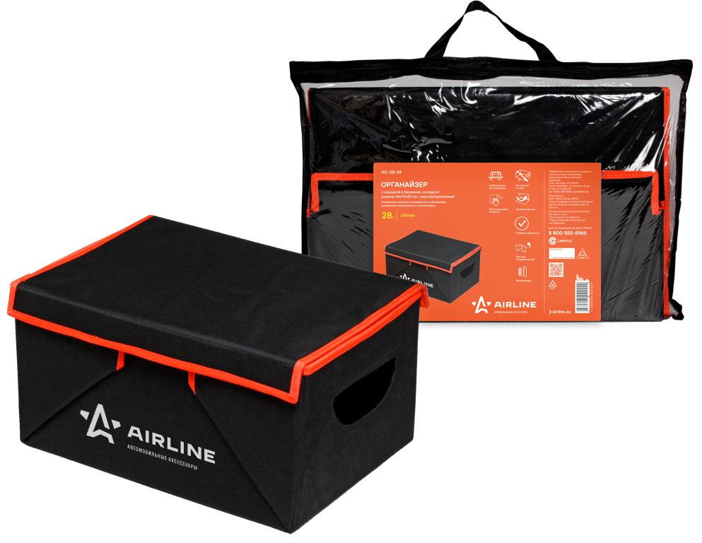 Органайзер служит для компактного хранения перевозимых в багажнике различного рода предметов.Данная модель представлена увеличеным объемом 28л, обладает жестким корпусом изготовленным из листового пластика и обшит плотным износостойким полиэстром. Складная конструкция органайзера позволяет сложить его в одну плоскость и он не займет много места. Для комфортной переноски органайзера на внешних боковых сторонах изделия размещены удобные вырезанные ручки.Также данная модель оснащена съемной крышкой.