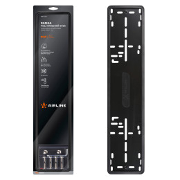 Рамки под госномер от AIRLINE – это оправа под номерной знак, которая крепится на бампер автомобиля винтами или саморезами. В каталоге представлены модели из нержавеющей стали с резиновыми уплотнителями и пластиковые модели с боковыми защелками.