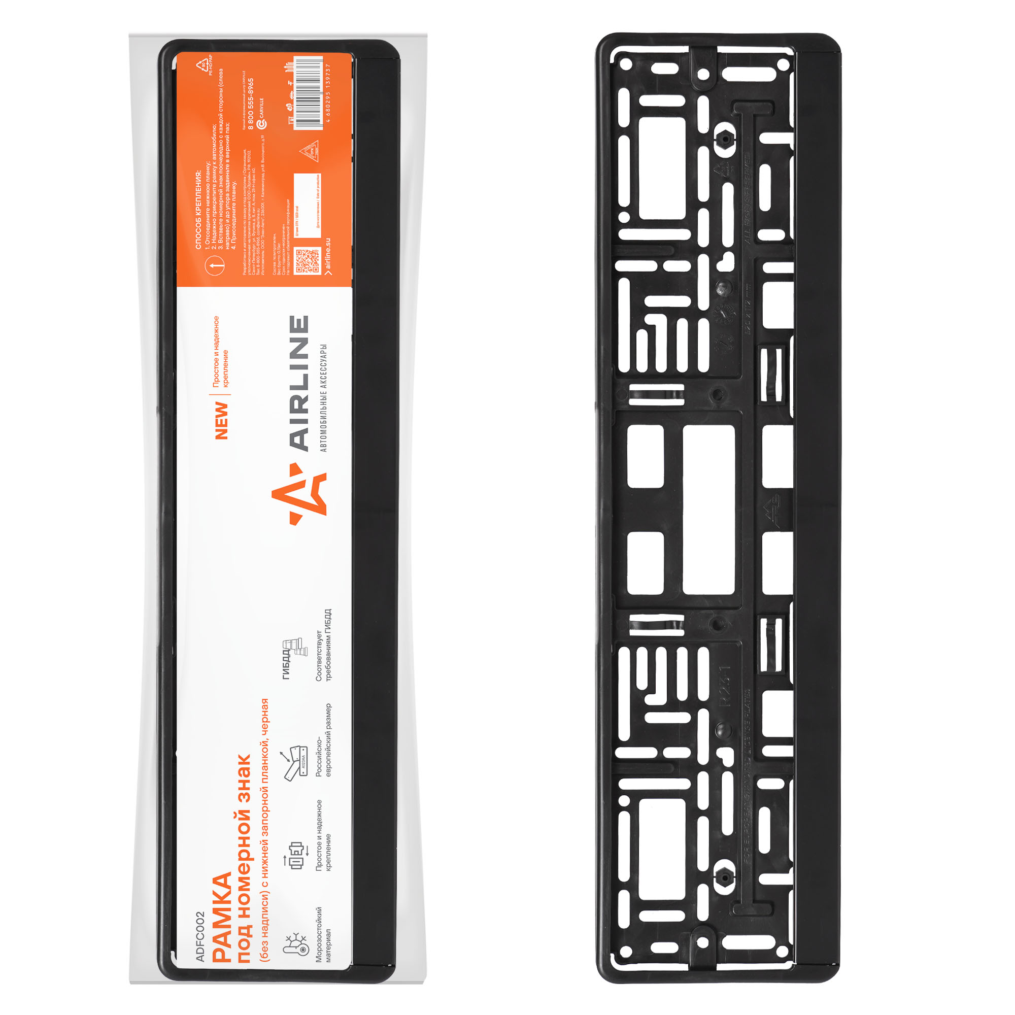 Рамка изготовлена из морозостойкого пластика и устойчива к перепадам температур. Установка рамки не займет много времени, т.к.изделие имеет простой механизм крепления.