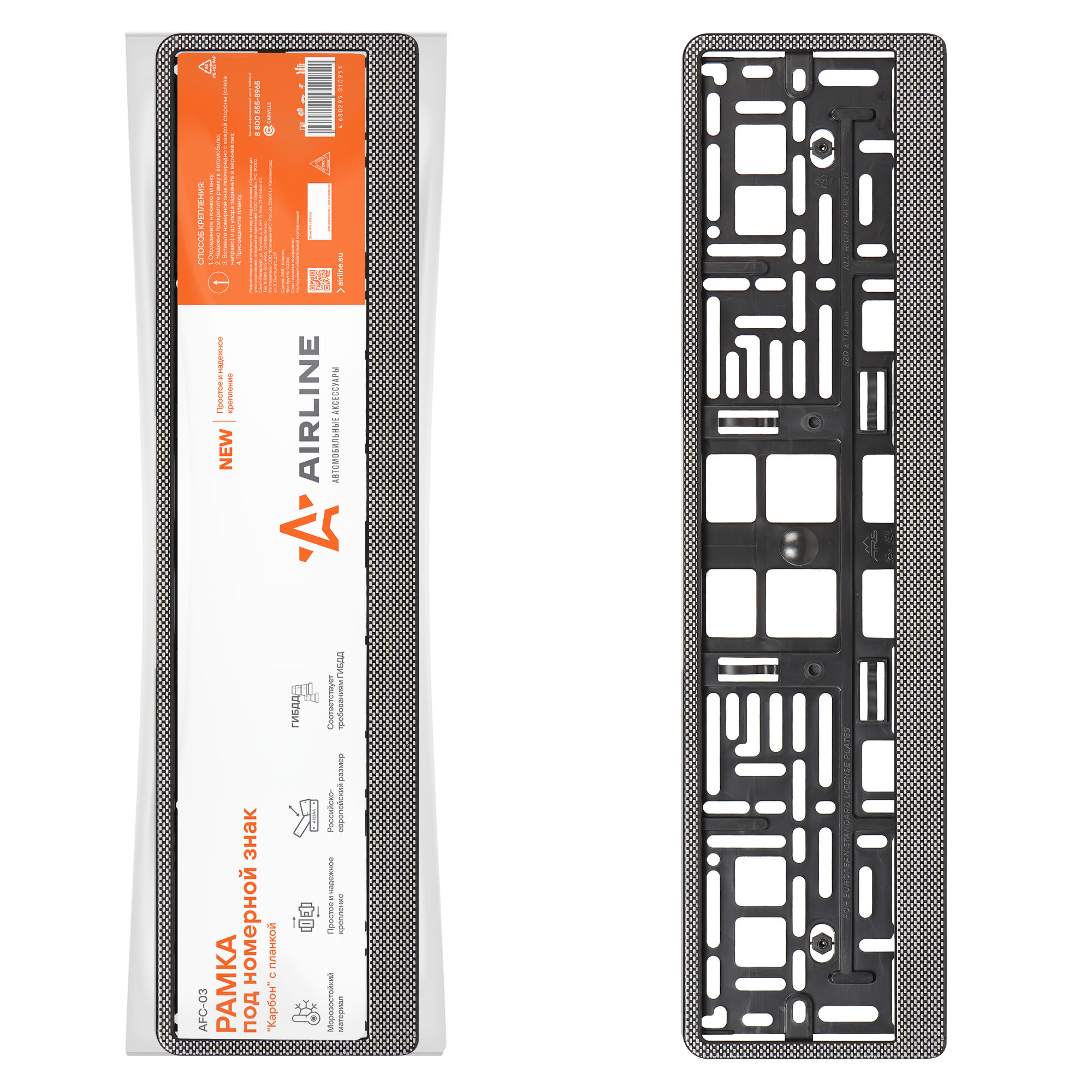 Рамка под номерной знак серии «карбон» от AIRLINE представляет собой отличное соотношение цены и качества товара. Рамка изготовлена из прочных морозостойких материалов и отвечает всем требованиям, предъявляемым отечественным ГИБДД. Для более надежного крепления номерного знака предусмотрена планка, более надежно фиксирующая его. Рамка устанавливается на бампер автомобиля с помощью запорной планки.