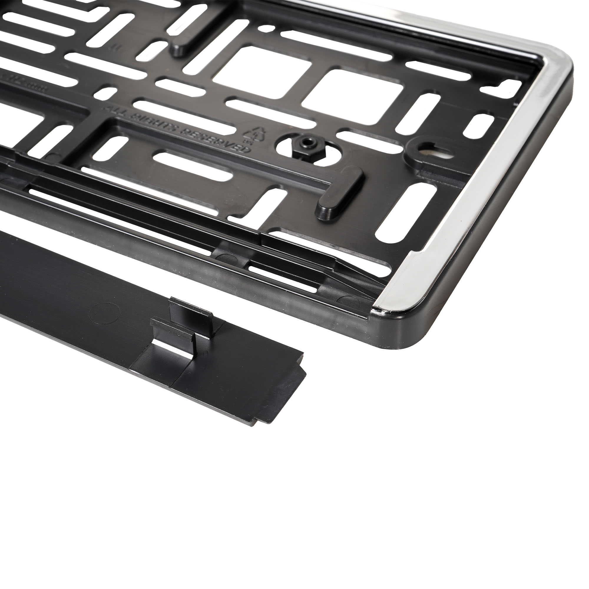 Данная модель рамки для номерного знака автомобиля отличается особой прочностью, т.к. изготовлена из хромированного материала. Рамка прочно фиксируется на бампере автомобиля благодаря особому механизму крепления. Изделие имеет доступную цену, стильный дизайн, а также высокие качественные показатели.