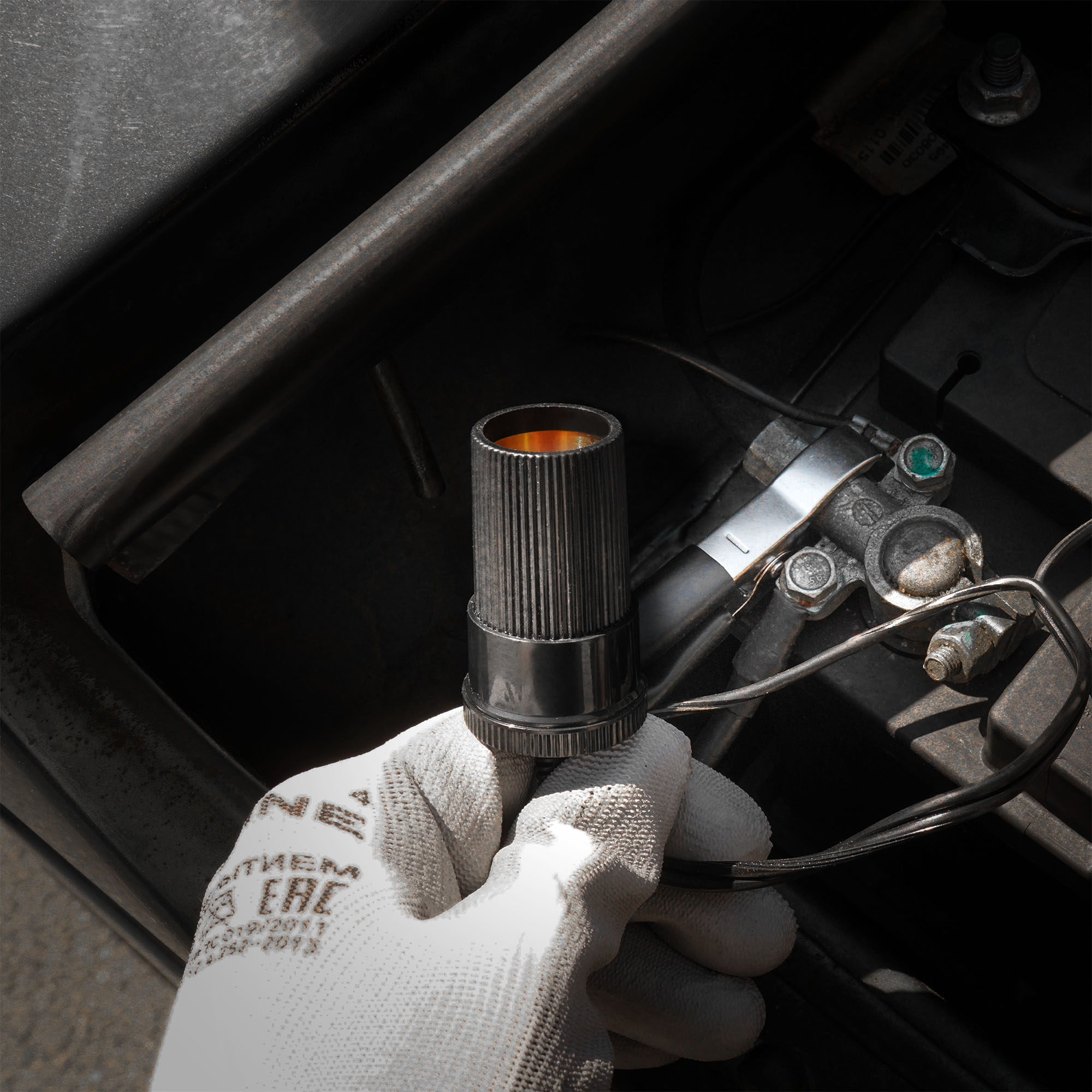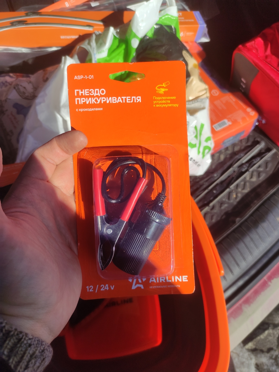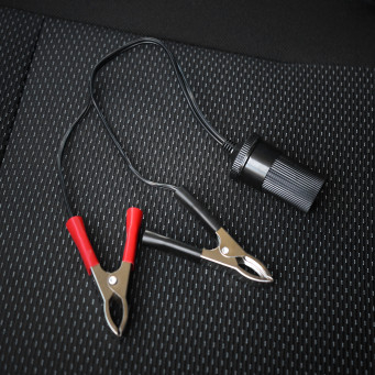 Розетка прикуривателя с зажимами "крокодил" для присоединения к клеммам аккумуляторной батареи.