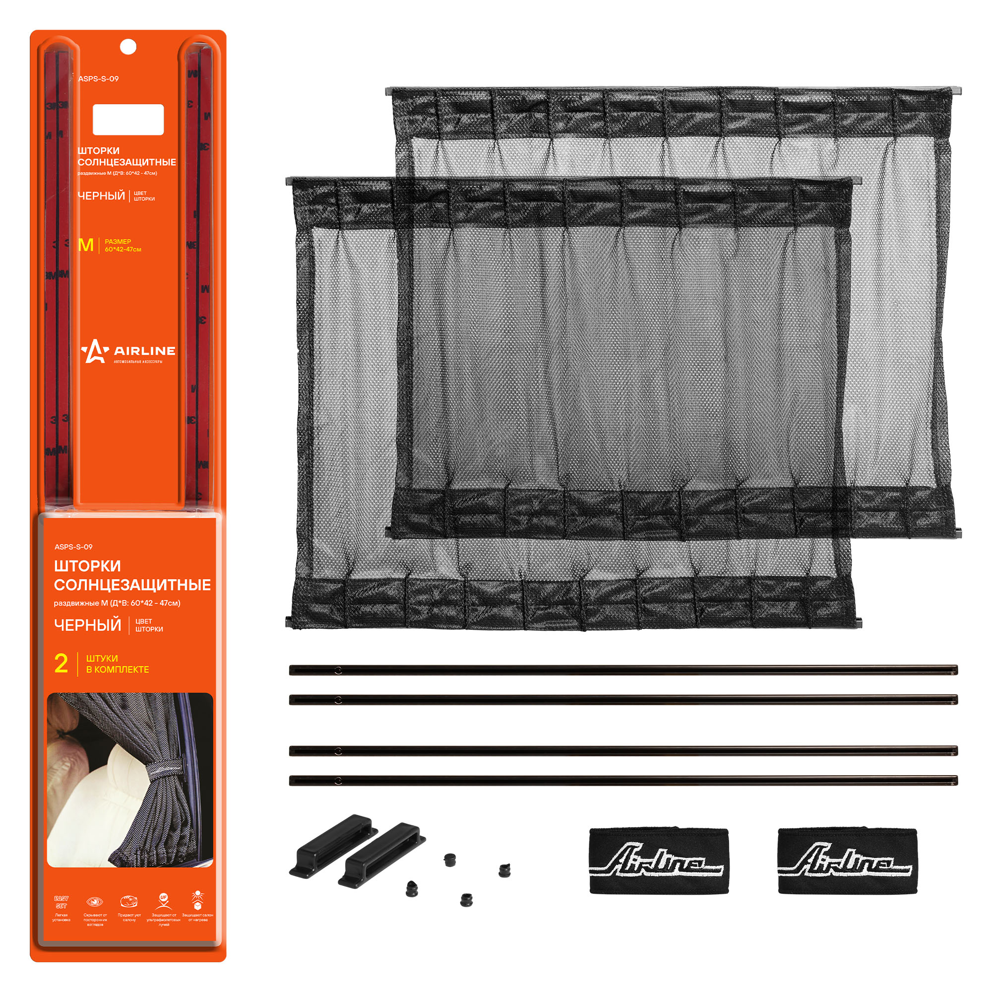 Шторки солнцезащитные, раздвижные. Большим преимуществом таких шторок является удобство в применении и большая площадь их покрытия, что обеспечивает полную конфиденциальность пассажирам. К преимуществу данного вида шторок можно также отнести их особый вид, способный украсить салон, предать ему домашний уют и комфорт. Шторки AIRLINE имеют универсальное крепление и различаются по размерам, что позволяет подобрать необходимый вариант под ваш автомобиль.