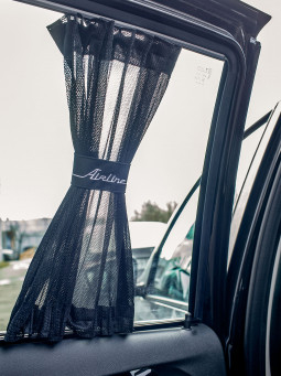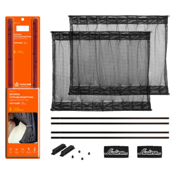 Шторки солнцезащитные, раздвижные. Большим преимуществом таких шторок является удобство в применении и большая площадь их покрытия, что обеспечивает полную конфиденциальность пассажирам. К преимуществу данного вида шторок можно также отнести их особый вид, способный украсить салон, предать ему домашний уют и комфорт. Шторки AIRLINE имеют универсальное крепление и различаются по размерам, что позволяет подобрать необходимый вариант под ваш автомобиль.